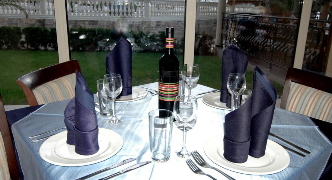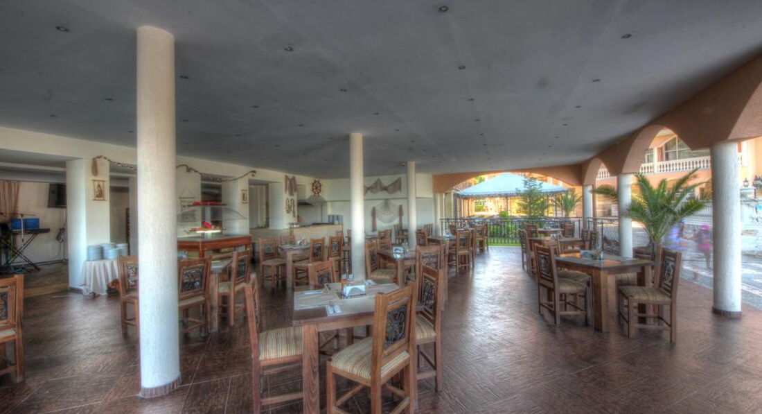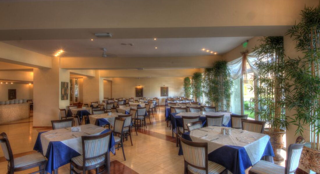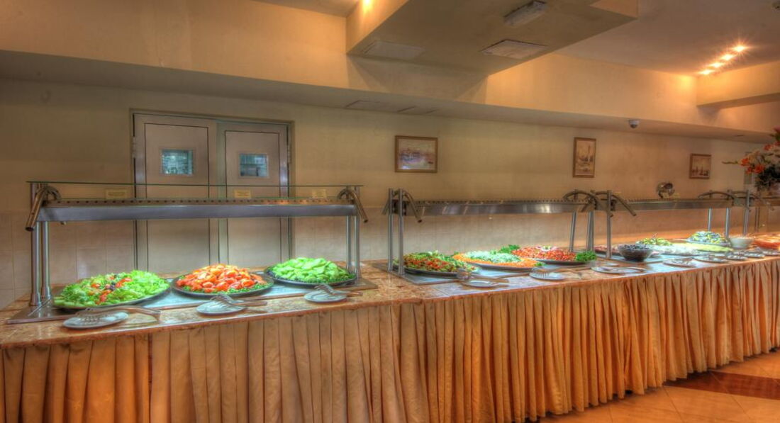 Питание. Питание в общем качественное, телятина очень мягкая часто была, один раз даже кролик был и индейка, овощи хорошие, сыры и колбасы низкокачественные, десерты вкусные, фрукты спелые (персики, нектарины, яблоки, бананы, апельсины, грейпфрут). НО. Ресторан маленький, раздача одна и подход к ней с одной стороны, соответственно гигантские очереди, везде грязь, столы убирают плохо, посуда с отколотыми краями. Выбор блюд очень маленький и изо дня в день меняются 3-4 блюда, завтрак вообще идентичен каждый день. С чаем и кофе там вообще беда. В столовой стоит всего две кофе-машины и они же наливают кипяток для чая (больше кипяток нигде не налить), соответственно постоянно очереди, в машины загружать не успевают, или перепутано кофе и молоко и в итоге через некоторое время их вовсе отключают и приходится ходить за чаем или в лобби-бар, или в бар на улице. В предпоследний день нашего пребывания во время ужина пока я отошёл за чаем в лобби-бар, а жена с дочкой за арбузом на 10 секунд, с нашего стола всё убрали, хотя стояли полные тарелки и вместе с едой исчезла детская игрушка, купленная там за 6 Лев. Мы попросили найти игрушку, она оказалась в помойке, её достали, но она оказалась сломанной. Попытались добиться какой-нибудь компенсации или чтобы купили новую, на что мне заявили что игрушка исправна и мы сами виноваты и даже не извинились. Писал претензию,но её даже принимать отказались, все в один голос твердили: "Мы ни за что не отвечаем." Короче концов не найти, вечер испорчен.