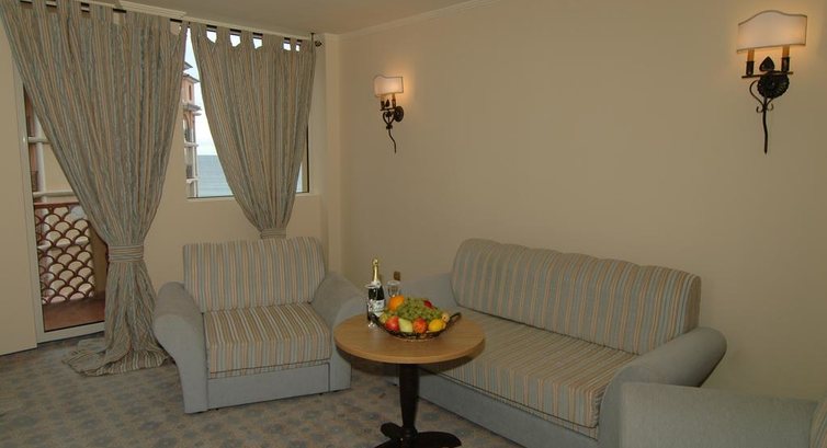 Номер: у нас был большой, просторный номер с большим балконом с видом на парк. Мебель в приемлемом состоянии. Есть сейф (платный), фен, холодильник. Убирают номер каждый день, но качество оставляет желать лучшего, просто застилают кровати и все, максимум - поменяют полотенца. Если есть возможность, то лучше берите номер с видом на море.