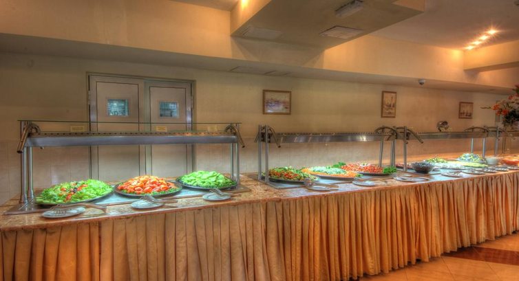 Еда - выбора особо нет. Столы грязные,не сервируются. Чтобы взять тарелку или прибор,надо просить отойти очередь,которая выстраивается за горячими блюдами. Чашки/бокалы -это отдельная песня.