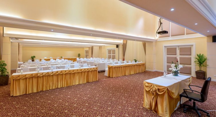 Всього 222 номери, у будівлі змінної поверховості (до 7 поверхів) та у котеджах.