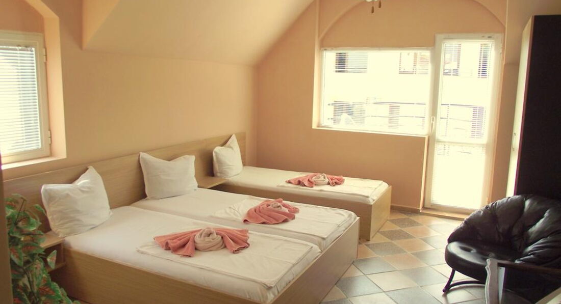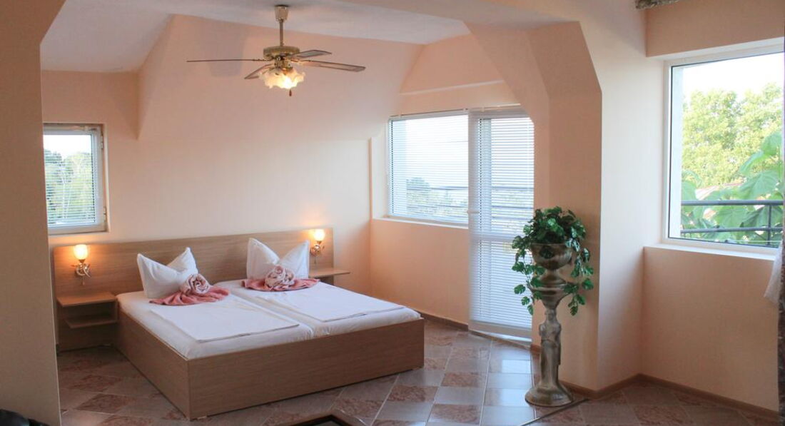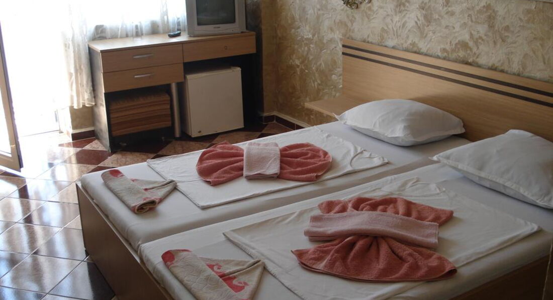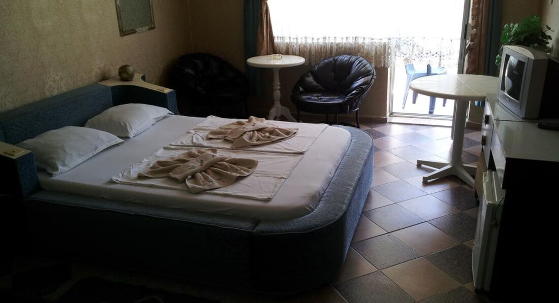 Приятный, скромный недорогой отельчик. Персонал доброжелательный, уборка в номере каждый день и очень качественная. Место тихое и спокойное, пляж немноголюдный и поэтому более чистый, чем в Золотых песках. Питание вполне хорошее. У нас был номер с балконом и видом на море в Анджи-2. До Золотых песков примерно 1,5-2 км, поэтому если хочется тусовки - надо это учитывать. Для нас это не было проблемой, так как были друзья-болгары с машинами. А вообще до дискотек можно и пешком пройтись минут 20. Советую сходить на пляж на Ривьеру (это перед Золотыми Песками) - не все знают, что вход туда абсолютно бесплатный, нам болгары подсказали. Там бассейны с лечебной водой, пляж не такой многолюдный, как в Золотых Песках. Из дискотек понравились Arrogance, PR Club, Bonkers и Malibu.
