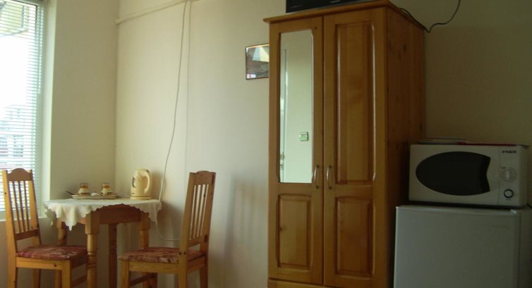 • кухня, обладнана мікрохвильовою піччю, плитою, холодильником та електрочайником