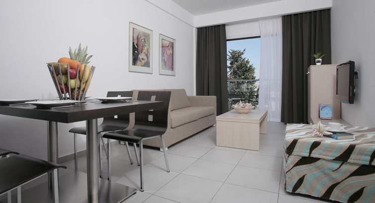 Приехали мы ночью, разместили нас тут же в номере, который окнами выходил не на внутреннюю территорию с бассейном, а на улицу. Номер "стандарные аппартаменты" был чистым и аккуратным с хорошей современной отделкой, огорчением было отсутствие ванны. Вместо ванны в номере был душевой поддон, который был влеплен в пол. После приема душа- весь санузел (маленький, почти как в хрущевке, если кто бывал в хрущевке- поймет) была наполнена водой, которую надо было обязательно собирать, иначе эта вода вытекала в комнату. Это был минус, минусом размещения было и то, что окна выходили на улицу, которая после 10 вечера каждого дня оживала. В первый день беспокойство доставляла музыка отовсюду, не из ночного клуба через дорогу. Мы хотели было поменять номер, нам даже согласились его поменять с трудом, но потом мы передумали, потому что за целый день так уматывались, что все было уже нипочем, окна закрывали и спали с кондиционером. Белье поменяли 1 раз за время. Для пользования электроприборами нужен переходник, его можно взять под залог на рецепции. Free wi-fi есть в холле, ресторанчике и на территории бассейна. Можно поиграть за 1 евро в бильярд.