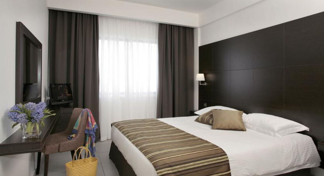 Отдыхали с мужем на Кипре в конце августа 2015. Отель произвёл хорошее впечатление, соответствует заявленной звездности.Расположен на второй линии, в центре города. Рядом магазины, кафе, таверны. Конечно, картинки на сайтах отличаются от реальности. Всё не такое новое и блестящее. Но главное, всё очень чисто. Убирались хорошо. И что удивительно, чаевых не брали. Номер у нас был стандарт с кухней. Очень удобно. Холодильник, плита, кофеварка, тостер, чайник. Посуда. Фена нет. Сейф - 15 евро + 10 евро залог, который вернули при выезде. Вайфай в номере платный, на ресепшене бесплатный.
