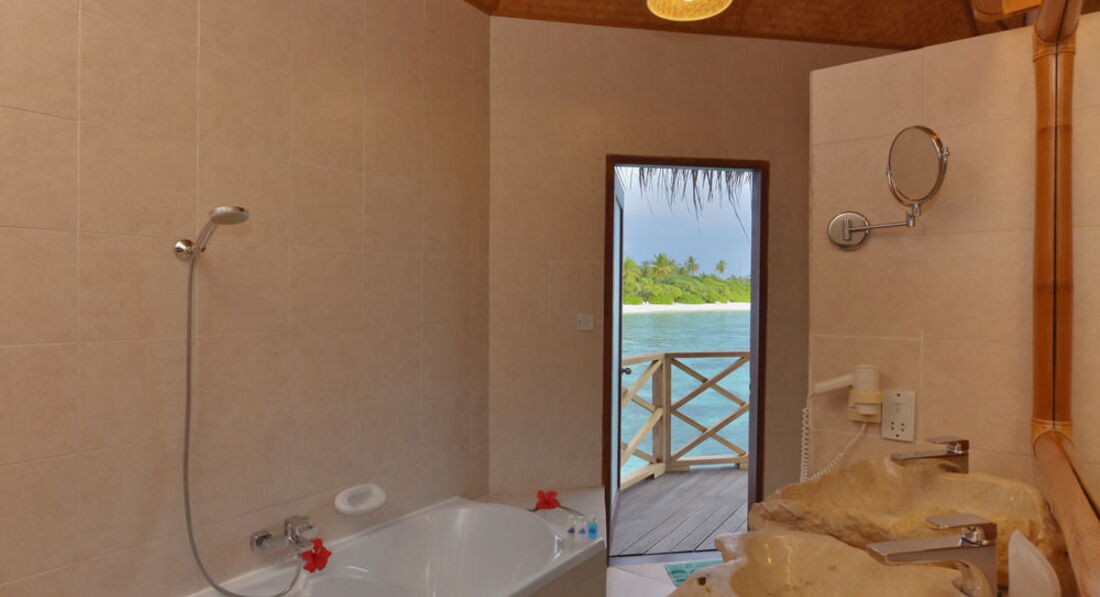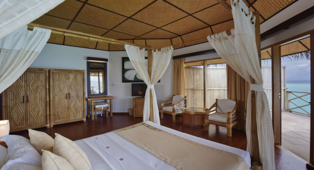 20 Water Villas (бунгало на воді з власною терасою з шезлонгами та спуском у лагуну).