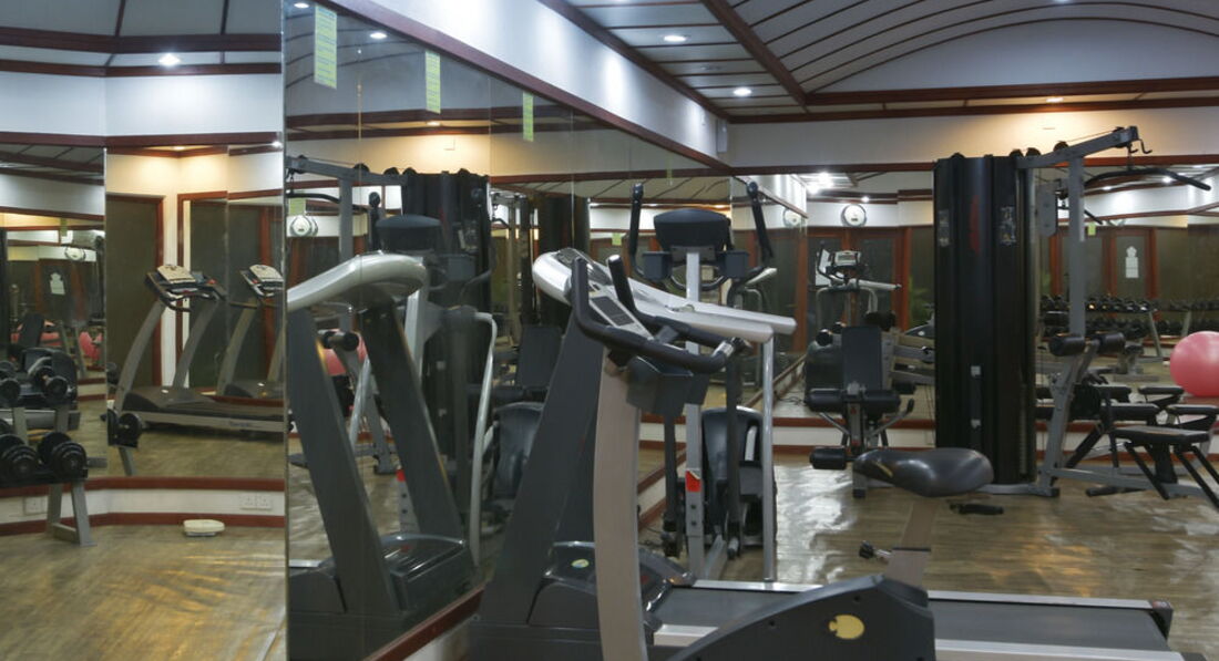 Спортзал бесплатен и вполне функционален. Но мне сильно не хватало полноценной классической штанги с блинами (вместо неё для жима можно использовать универсальный тренажёр, что не очень удобно) и турника. Две беговые дорожки в норме, с велотренажёром найти общий язык не удалось - он самопроизвольно сбрасывал нагрузку после 2-х минут вращения педалей.