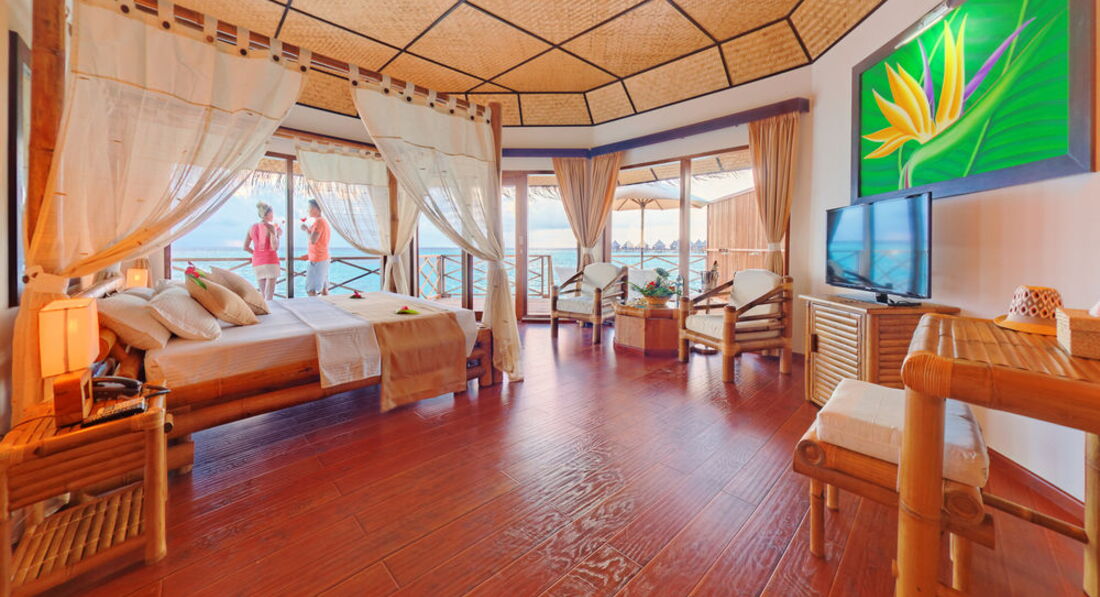 По прилету в отель, нас сразу заселили. Выбирали бич бунгало, так как отель был полный, нам дали водное бунгало, и мы там остались. На счет уборки никаких нареканий не было. Дверь никогда не закрывали, все оставалось открытым, ничего не пропало.