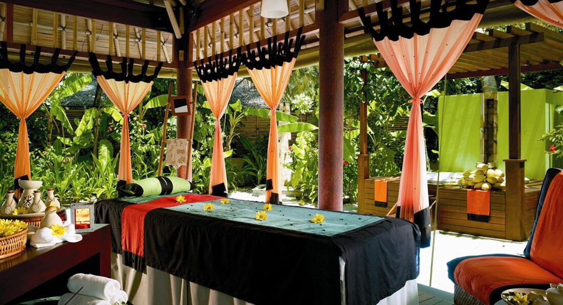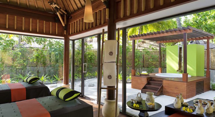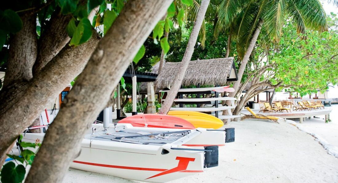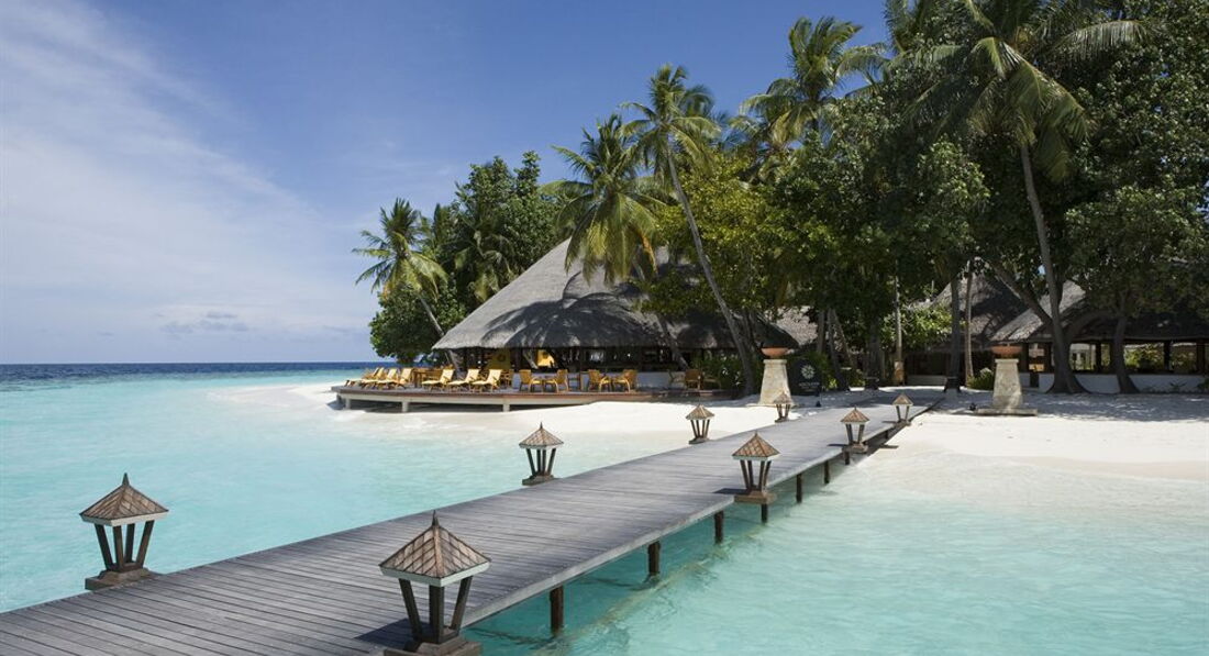До острова из аэропорта 30 минут на скоростном катере ( поездка не напрягает , все комфортно) . Встреча на пирсе , прохладные полотенца , холодный ( вкусный )чай. Все быстренко объяснили , вручили ключи и мы на вилле . Мне показалось , что виллы с 27 до 35 имеют самое выигрышное расположение ( ну в мае точно) , дует ветерок и нет такой жары как на противоположном берегу. И закат именно там ))). На вилле есть все , что требуется для комфортного отдыха . От соседних домиков отгорожен пальмами и цветущими кустами . Пляж хороший , чистый , мелкий песочек. Джакузи пользовались 2 раза , кто любит , тому наверное понравится , лежать под открытым небом и любоваться проплывающими облаками . Завтрак был включен ( шикарный выбор фруктов , и вообще много всего ) , обедали и ужинали по меню ( а ля карт ) , перепробывали все меню ( все вкусно ). Риф супер , каждый день плавали с большими акулами , тунцами , черепахами , все яркое , цветное . Плавали по несколько часов , настолько красиво . По острову бегают смешные птицы , летают летучие лисы ( рыжие , красивые) , у нас во дворе жила ягуана . Убираются 2 раза в день , воды ( питьевой ) пополняют всегда . Очень понравилось все . Если хотите отдохнуть , расслабиться , увидеть подводный мир во всей красе , то это в этом отеле !