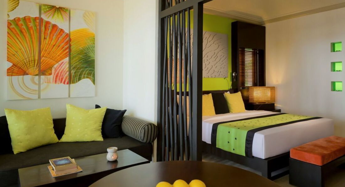20 Beachfront Villa (57 кв.м., берегові бунгало, що окремо стоять. Спальня (двоспальне ліжко), вітальня з додатковим ліжком і обідня зона. Номери з прямим виходом до моря і садом.),
