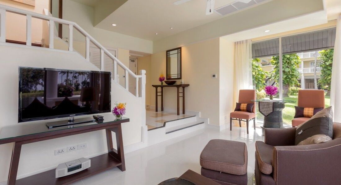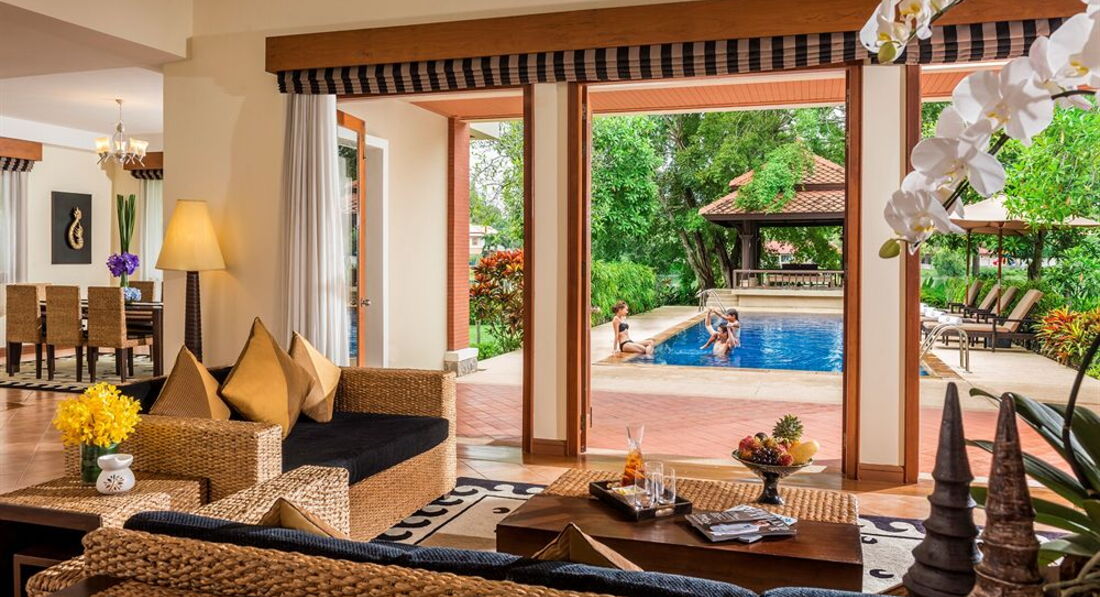 Почему с детьми не в Тайланд.Выбирая в этом году орентир был больше на цену,эксперименты с детьми не люблю,летаем по несколько лет в одни и те же места.В том году была нереальная Доммникана,особенно сейчас,начиная свой отдых тут понимаю,насколько там,как и в Турции орентир на комфорт семей с детьми.Но увы,в этом году наш отель подорожал в два раза почти и мы не были готовы-выбор пал попробовать Тайланд и этот отель.Он заявлен как один из самых дорогих и лучших,а когда летишь с детьми конечно хочется самое хорошее,тк ценена все включено была нереальная,взяли на базе завтраков-пожалела миллион раз!!!!!В отеле все неадекватно дорого!!!Хотелось бы порекомендовать отелю иметь семейный ресторан с более доступной едой и выбором для деток,тк отсутсвие таковых очень портит отдых!Есть с чем сравнить!Завтраки очень скромные,что очень удивило тоже!Но самый ужас в том,что поблизости нет мест для обедов и улицы не предусмотрены для пешеходов и можно сказать опасны!особенно вечером!Все это пока очень напрягает и думаю,что ситуация не изменится!К превиликому моему сожалению!Номер огромный,в четырёх уровнях-такой совсем и не надо,лучше меньше,но с фруктами и морепродуктами,которых мы не видим!Все чисто и красиво,персонал очень приветлив и сразу спешат на помощь по любому вопросу.Итог,если Вы любите комфорт,шикарную кухню,систему все включено и спокойную без волнения воду,не думать о расходах и где добыть еду-Вам не сюда точно!