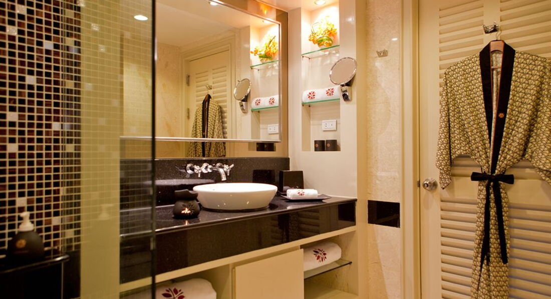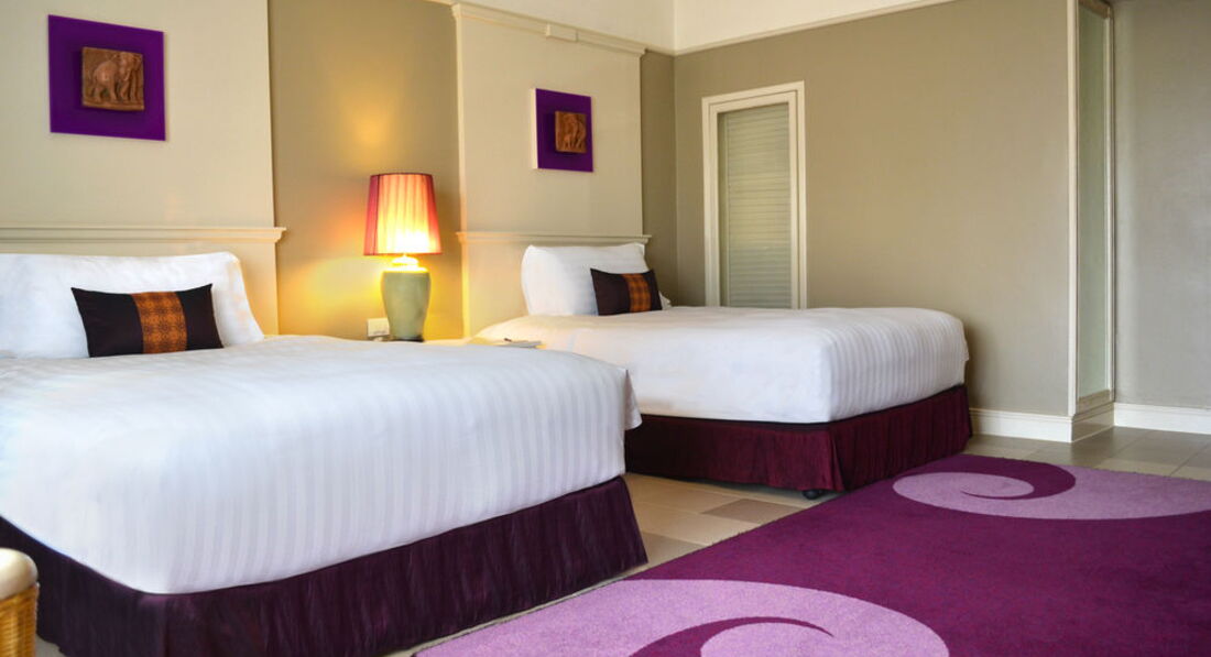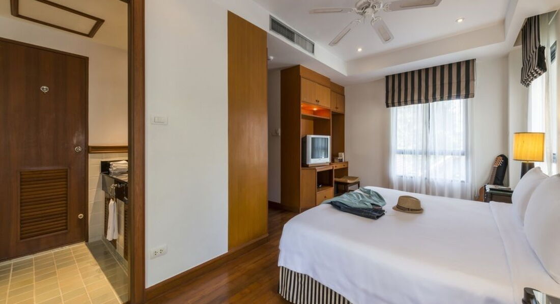 Что касается номера. Большой санузел, с двумя раковинами, душем и ванной. Достойно. Но есть минус. Слышимость из этой комнаты огого!!!)))) Далее. Большая, да ладно большая, огромная кровать! Супер. Дополнительный диван, кресло, комод, столик с зеркалом, достаточно вместительный шкаф, телевизор и…… Минибар! Который у нас сразу же забрали. Так как мы не оставляли депозит за номер. Да, да. Можно не оставлять депозит. Так как деньги они берут долларами (если у вас нет местной валюты) но возвращают только в баттах. А на фиг мне эти несколько тысяч батт в России?!( Кондиционер фурычит отлично. Но очень шумно. Включали его когда уходили из номера. Охлаждал отлично. Пока мы в номере, постоянно работал карлсон под потолком. Белье и полотенца в отличном состоянии. Все беленько и приятненько. Меняется всегда. Минус номера на наш взгляд, это слабое освещение. ДОБАВЬТЕ ЛАМПОЧЕК или мощности лампочек!)))) В целом все отлично.