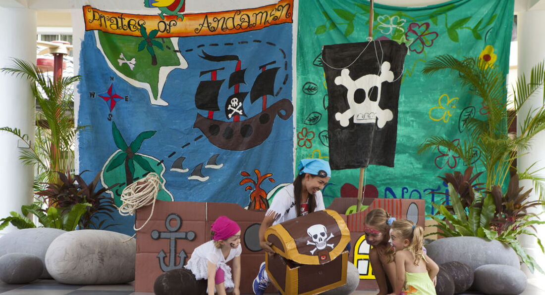 На территории отеля живёт слоник, его разрешают трогать, деток катают на нём. Есть также детская площадка под навесом, в бассейне песчаный вход в одном месте. Очень понравилось ещё, что можно на лодках покататься на территории отеля. Между бассейнами площадка для развлечений вечерних, и тут внимание, либо корпус с видом на бассейн (1-й этаж прямой выход к бассейну), следовательно выход на площадку, рядом ресторан и пляж и очень шумно, либо потише, но тогда выбирать корпус подальше от пляжа. Включают микрофоны, поют, такие как мы в бассейне поздно вечером с мячом играют, создавали много шума.