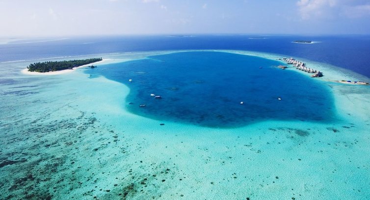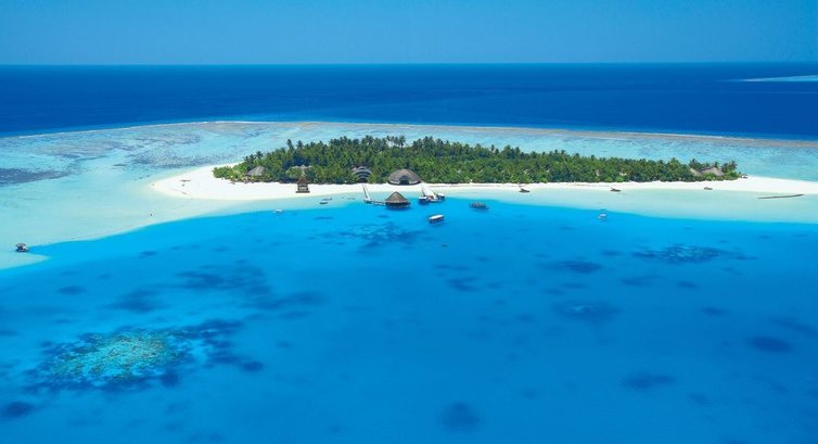 Нет присоединённых к острову водных вилл(они стоят отдельно недалеко от от острова) и поэтому остров не выглядит перенаселённым.