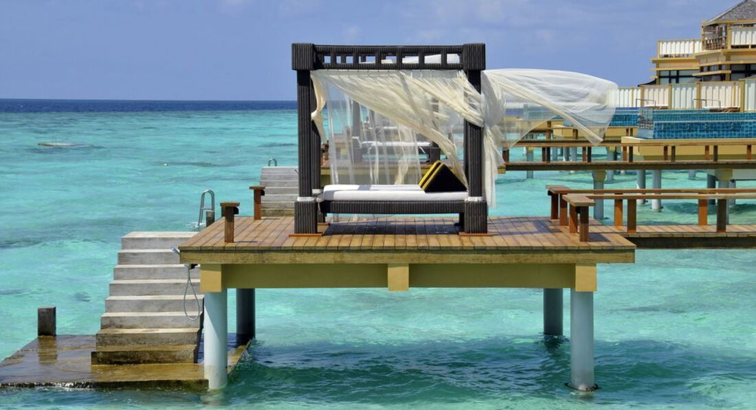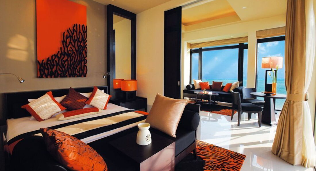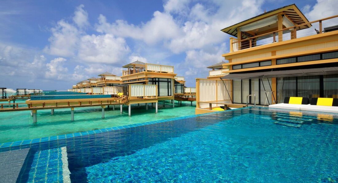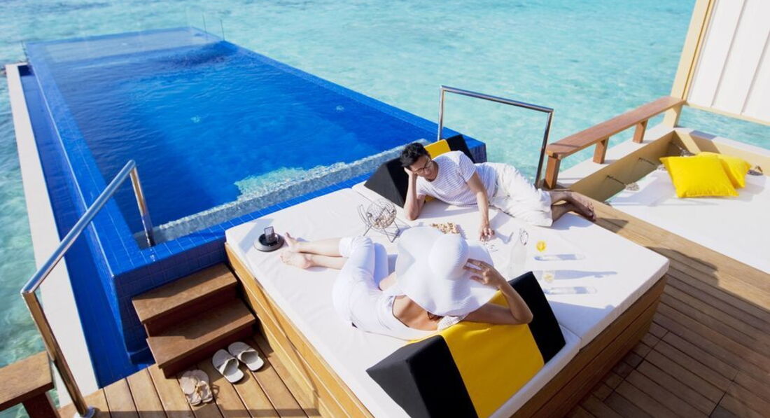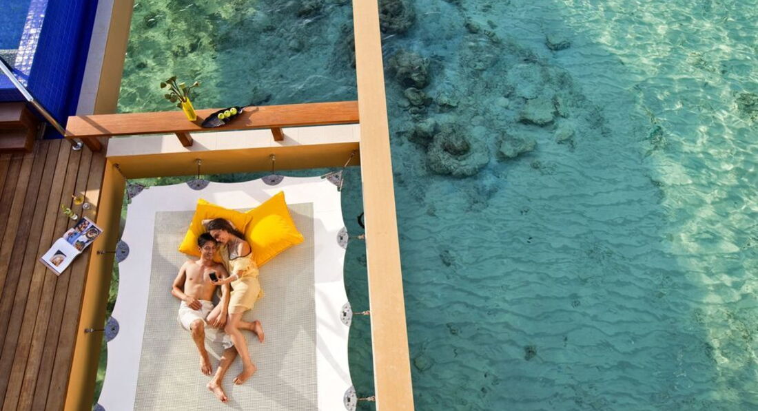 3 Sanctuary InOcean Pool Villa (287 кв.м., дворівнева водна вілла, що складається з двох ізольованих спалень (двоспальне ліжко та дві односпальні), вітальнею, просторою ванною з душем. Номери з прямим виходом до моря, басейном (27 кв.м.). ) та гамаком.).