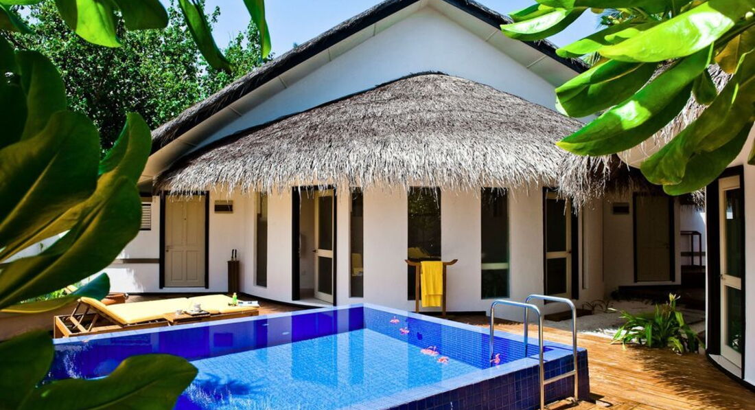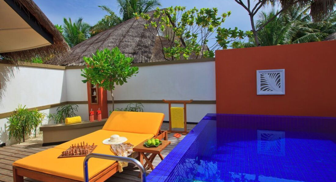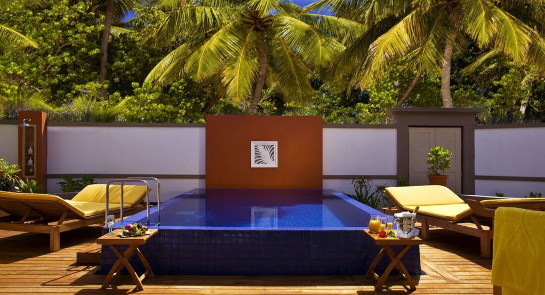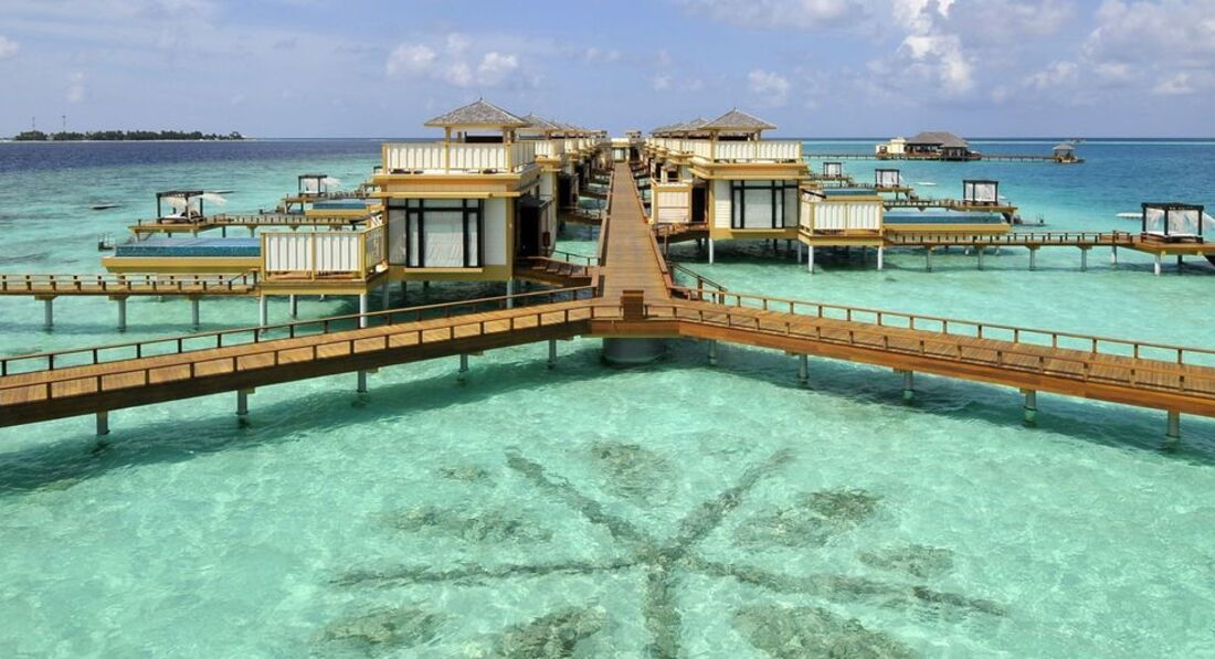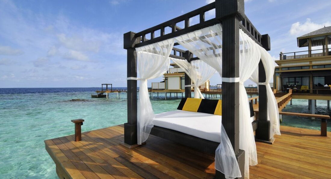 3 Sanctuary InOcean Pool Villa (287 кв.м., дворівнева водна вілла, що складається з двох ізольованих спалень (двоспальне ліжко та дві односпальні), вітальнею, просторою ванною з душем. Номери з прямим виходом до моря, басейном (27 кв.м.). ) та гамаком.).
