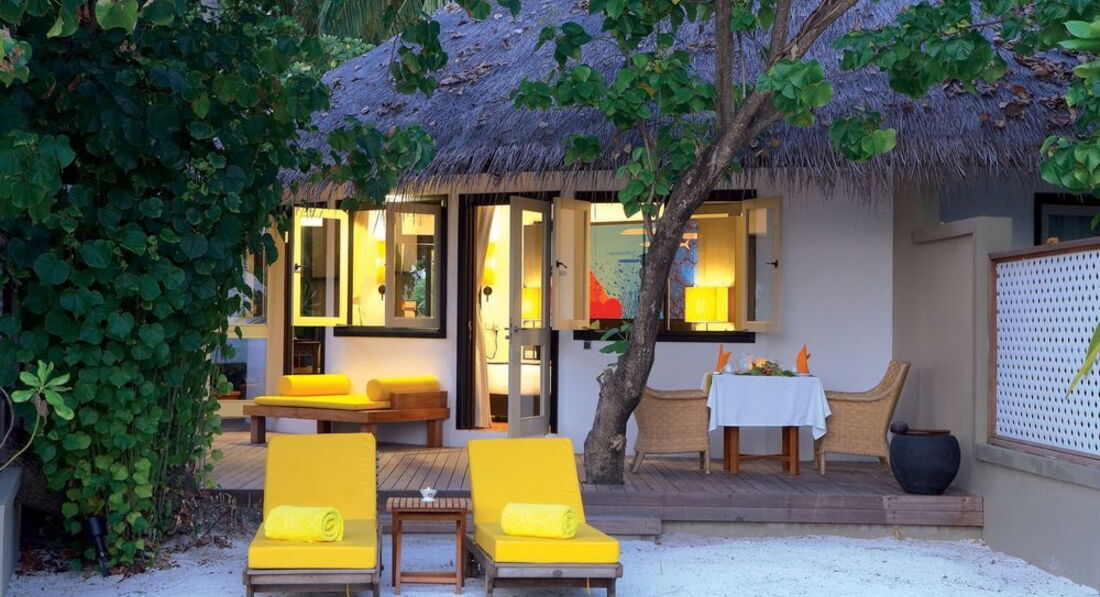 Deluxe Beach Front Villa - самая дешевая категория. Стоят в блоке на два номера - соседний всегда такой же, но с джакузи на террасе (Jetpool Villa). Стоит чуть дороже, но джакузи такое маленькое, а море настолько рядом, что на мой взгляд, брать номер подороже не имеет смысла (либо тогда уж брать виллу с бассейном). Замечу, что со стороны пляжа вилла открыта - там высажены какие-то кустики, которые особо ничего не загораживают. Лучше брать виллы со стороны, противоположной ресепшну.