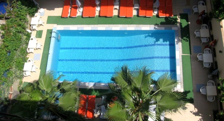 Мне с друзьями удалось в разгар сезона успеть купить тур на 15 дней с прямым вылетом из Калининграда за 35000 за двоих. Тур купили за 8 дней до вылета. И за эти деньги я могу сказать-отель СУПЕР! Главное достоинство-Почти самый центр города! 10 минут медленным шагом по главной улице и вы в центре у порта и улицы баров и пабов. Второе достоинство- через дорогу пляж! Ну и по мелочам- пляж песочный, шезлонги 2 бакса, пить и есть можно свое))) Да, конечно отель не предел мечтаний, но номера стандартные, маленькие, две кроватки, теле под потолком, холодильник, балкончик. Ванная комната как в хрущевке (есть фен). Но что бы поспать ночью и помыться вполне достаточно. Есть лифт...да, в лифте нет внутренней двери, ну и что))) вы же не в лифте жить приехали))) Столовка так себе, но опять же, голодным не останешься...за 2 недели мясо было 2 раза...в основном соя))) НО-есть гарниры, овощи и какой нибудь фрукт или ягода))) Голодным пр желании не останешься да и вообще- вы что жрать приехали)))) Бассейн маленький, но купиться можно. Загорать у бассейна нельзя-после обеда тень. Вообще для больших курортов в Турции это обычный отель.все отели в центре этажей 6, бассейн маленький, все экономно...и цена соответственно не велика. Ну а в сезон когда он стоит 60000 за 2 недели, так простите и 4* и 3* стоят от 70000.
