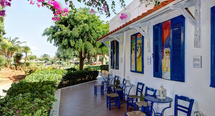Розташування: розташований за 22 км на схід від аеропорту м. Іракліон, за 4 км від курортного м. Херсонісос, у селі Анісcарас на березі моря.