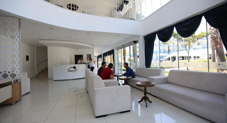 Отдыхали в отеле с женой с 17 по 25 октября 2016. Отель выбирали в первую очередь по цене. У самых дешевых "трешек" последние отзывы были просто ужасные, поэтому решили, что стоит переплатить несколько тысяч, чтобы взять что-то более приемлемое и, почитав отзывы, остановились на Blue Sky. На двоих за 8 дней вышло 33 т.р. Путевку брали от Пегаса. Перелет, трансфер - все без вопросов. Первое впечатление об отеле подпортил довольно наглый турок Руслан, который занимался расселением, а заодно и очень навязчиво предлагал хамам по 20 долларов с человека. Приехали уставшие, хотелось побыстрее отдохнуть, и поэтому, когда он скинул до 30 на двоих, согласились. Хамам и сауна, кстати говоря, в отеле и так бесплатные, поэтому эти деньги по сути за массаж. Вообщем-то неплохой, но в нашем случае все делали как-то слишком торопливо, явно меньше заявленных двух часов, а учитывая, что на улице в точках продажи экскурсий вообщем-то можно было купить хамам по 10 долларов - то мы явно переплатили. Но это мелочи. Еще один развод кстати есть от пегасовских гидов. Сначала, по дороге в отель, гид вешал лапшу, что мол пока вы не встретитесь с отельным гидом, и не поставит какую-то печать на ваучер, очень опасно выходить из отеля, без этой печати вас может забрать полиция. В итоге естественно никто никаких печатей не ставил. А цель этого одна - чтобы до встречи с гидом вы не успели посетить уличные точки продажи экскурсий, потому что гид впаривает их в 2-2,5 раза дороже, чем можно взять там.