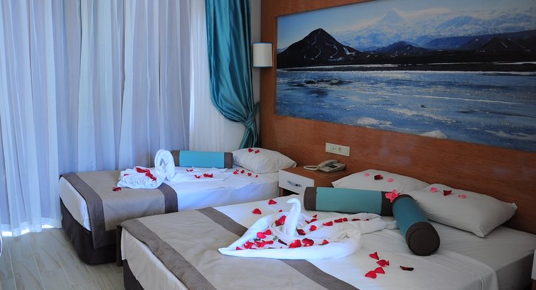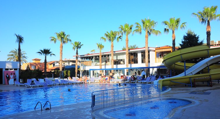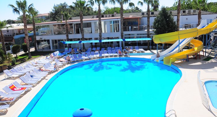 Отдыхали в этом отеле с 21.06 по 30.06 2017 года. Никому не рекомендую здесь отдыхать. Даже не знаю, что можно назвать плюсами этого отеля, только лишь море. Но это не заслуга отеля, т.к. даже нормального пляжа у него нет. Питание просто ужасное. Территории просто нет. Небольшой бассейн и две горки. Анимация детская - 3 песни одни и те же, а взрослая - каждый день или пара отеля, или мистер или мисс отеля. На пляже нет ни бара, ни матрасов на лежаки, а часто и самих лежаков. А самое ужасное - это питание. Я такого никогда в жизни не видела, и надеюсь не увижу. Мяса нет даже в виде ужасных сосисек, а если бывает - то это отварная курица, за которой километровые очереди или жареная рыба, которая бывает тоже редко. Люди просто ели хлеб батонами, даже выпечки в виде разных булочек не было. Не было ни каши на завтрак, ни ложек чтобы есть суп в обед. Постоянно заканчивающая кола, фанта, пиво и даже разведенные соки порошковые из автоматов. А последний день сломался общий единственный на весь отель кулер с водой, так они притащили старый какой-то аппарат, подключили к нему кран с водопроводной водой - и на те, пейте пожалуйста))) Ну однако свой заряд солнца и моря, за которым мы ехали в Турцию - мы получили, и это главное)))