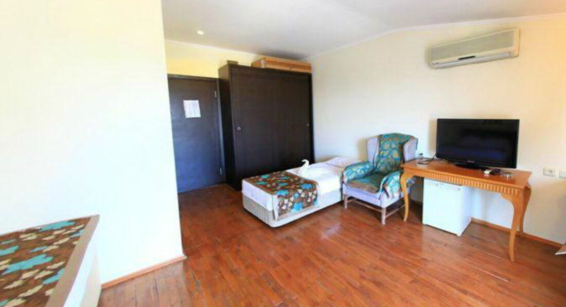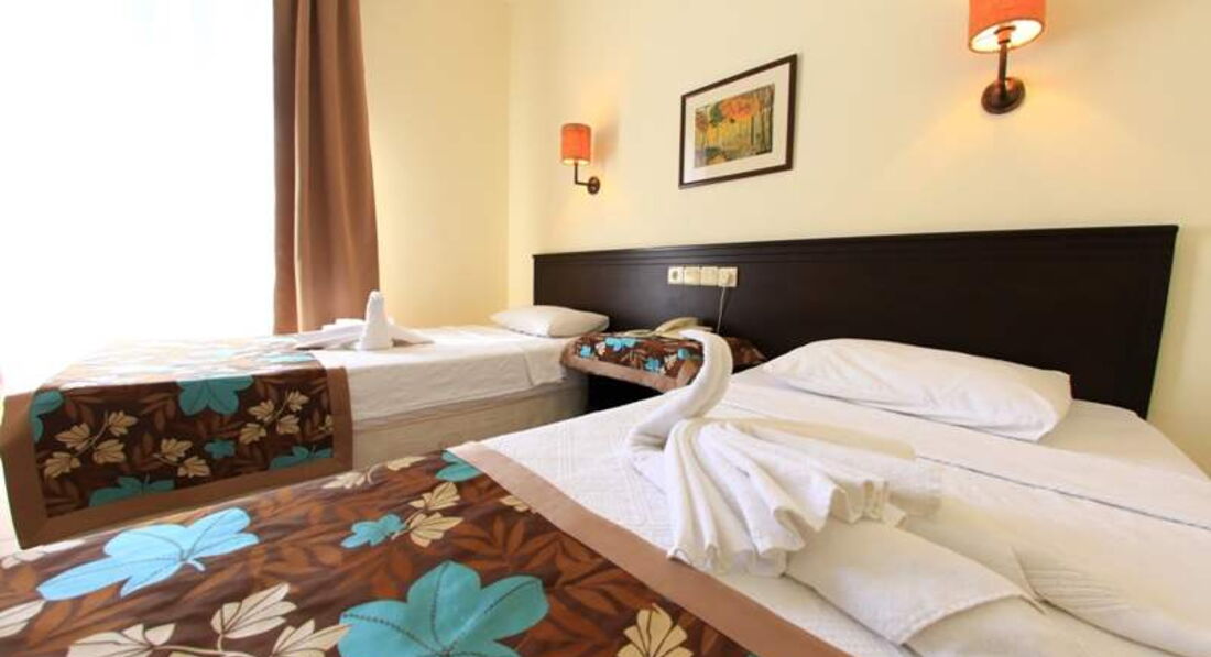 Отдыхали с дочкой в Турции первый раз.Тур покупали сами через интернет,поэтому читали отзывы о многих отелях,мы искали бюджетный вариант и не самые плохие отзывы.Хотя теперь я точно знаю,что сколько людей,столько и мнений и об одном и том же люди отзываются по разному.Нам пока не с чем сравнивать,но нам с дочкой все понравилось.Приехали мы в 8 вечера в отель,нас сразу отправили ужинать,а в этот вечер приехало много народу и ужина на всех хватило.Еще получилась накладка с номерами и администратор Шахин попросил вежливо подождать немного,но за это нам дали бесплатный вай фай на два телефона( платный вай фай 10$ с телефона) и бесплатное посещение Хамама,а так же номер хороший.Прождали мы конечно долго до 3х часов ночи,но все что пообещали выполнили.Заселили нас в более новый корпус в 914 комнату,светлая мебель,чистая,две кровати,одна тумбочка,телевизор жк,кондиционер работал,в душе была горячая вода.Утром обнаружили потрясающий вид на горы с балкона,мы жили на втором этаже.Вода горячая была всегда,из моющих было только жидкое,пенящееся мыло,приятно пахнущее,шампунь брали с собой.Уборку в номере проводили через день,а белье и полотенца за 9дней поменяли3раза.Вечером обнаружили,что фен не работает,утром сказала Шахину,что не работает и пока мы завтракали его поменяли на работающий.Хамам,как и обещали нам,мы посетили бесплатно,недалеко от отеля в Bella spa,тоже очень понравилось.Еды много было,утром сыр,несколько видов,колбаса,яйца или омлет,много овощей конечно же и каждое утро что нибудь жарили при нас:оладушки,пончики,омлет по болонски или просто яичницу.Чай и кофе утром были в столовой,а в течении дня можно было их попить в баре на улице.На обед тоже было много овощей и какое нибудь одно блюдо с мясом,на ужин уже два блюда с мясом и опять же на улице делали:шашлык,мясо,как для шаурмы,ребрышки на гриле,котлетки.Мне не хватало только рыбы.Из фруктов был арбуз,абрикосы,сливы,виноград.Пироженые были слишком сладкие,но наверное в Турции такие любят.В баре на улице с 10 утра до 10 вечера были газированные фанта,кола,спрайт и соки разведенные из концентратов,кулер с водой с обычной.Пиво,вино белое и красное,все неразбавленное,бутылки открывали при нас.Чай кофе тоже весь день.Около бассейна ставили очень удобные лежаки,с виду бассейн маленький,а когда плаваешь,очень даже хороший.В номерах нет холодильника,но нам он и не нужен был,наедались в столовой.На море в 17 давали кексы с чаем или арбуз,голодными не были никогда,кстати весь персонал,включая хозяина отеля,кушали там же в столовой,то же самое,что и мы.В целом отель конечно маленький,но уютный,территория небольшая.До моря близко,перейти через дорогу и еще метров 300.Море замечательное теплое было,чистое,пляж свой с лежаками,если долго не спать,то лежаков всегда хватает,а там кто то приходит,кто то уходит,можно лежак найти,они бесплатные,полотенца пляжные тоже на рецепшене можно было взять раз на два дня.Вход в море расчищен,но без спец обуви все равно плохо заходить,ее можно было купить рядом с отелем разные от 2 до 5 $ за пару и вообще много разных магазинчиков по приемлимым ценам на любой вкус.Вечером на рецепшене был Эмил,очень отзывчивый мужчина,мы собрались на экскурсию,попросили ланч боксы и он без разговоров нам их предоставил.Экскурсии от туроператора конечно в два раза дороже,мы покупали на ули