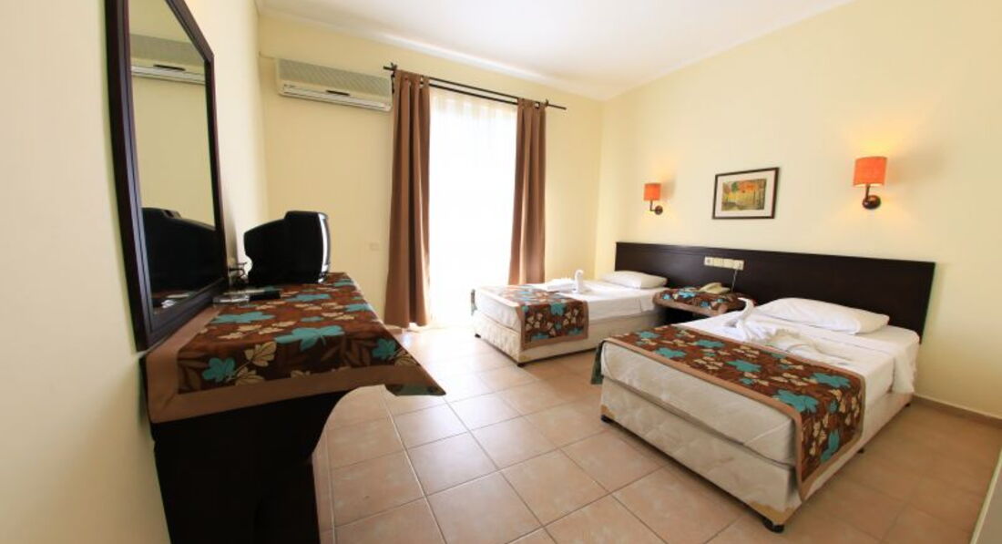 Отдыхали с дочерью в конце августа 2015г.Ехала без особого желания, т. к. начитавшись отзывов, разочаровалась в своем выборе.Приехали в отель вечером к концу ужина и началось.........встретили нас приветливо накормили-хорошо(еда в течении недели нормальная,небольшое разнообразие,но вкусно и оочень вкусный хлеб и запеченные овощи ) , заселили в приличный номер на 4 этаже. Чистенький просторный, две кровати, тумбочка, шкаф с плечиками, комод с зеркалом . Телевизор и кондиционер ,душевая кабина, унитаз все работает.Балкончик с креслами и вид - это отдельная песня , весь отпуск я ежедневно восхищалась видом из окна. Шикарные горы меняющиеся в зависимости от освещения солнцем или луной. Много зелени и незабываемый воздух. Вечером же пошли к морю. идти пару минут небольшой скверик и чудесное чистейшее море. Никакие тапочки мы не покупали, заходили в воду по понтонам из беленьких мешков с мелкой галькой.И наслаждались бархатной теплой водой не переставая восхищаться. вода прозрачная даже на глубине. Утром и днем уплывали к буйкам и висели на них , а ночью после ужина купались в лунной дорожке.ЗА НЕДЕЛЮ ОТДЫХА КАЙФ ЛОВИЛИ ЕЖЕДНЕВНО.Экскурсии покупали в уличном турагентстве ( у Наджипа) дешевле чем предложения у отельных гидов.Очень понравился круиз на корабле.Заходили в сказочные места для купания и фото сессий, пенная вечеринка приветливые и зажигательные турки со своими танцами и вполне приличный обед. Брали напрокат велосипеды и ездили на дикий пляж - очаровательное место.В Кимер сами на маршрутном автобусе ездили , то же приятная во всех смыслах прогулка. Хамам , рынок вдоль всего Бельдиби, парк вдоль набережной во всем только положительные впечатления.Семь дней солнца, чистейшего моря. чистый воздух, много зелени и приветливых людей.