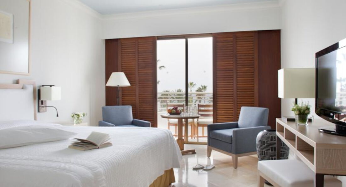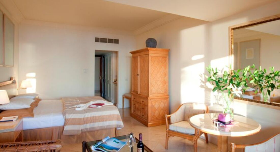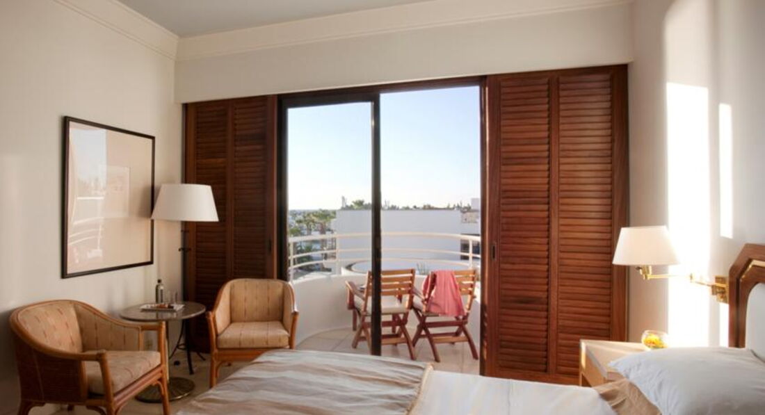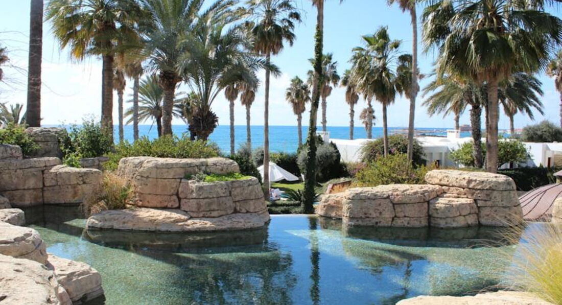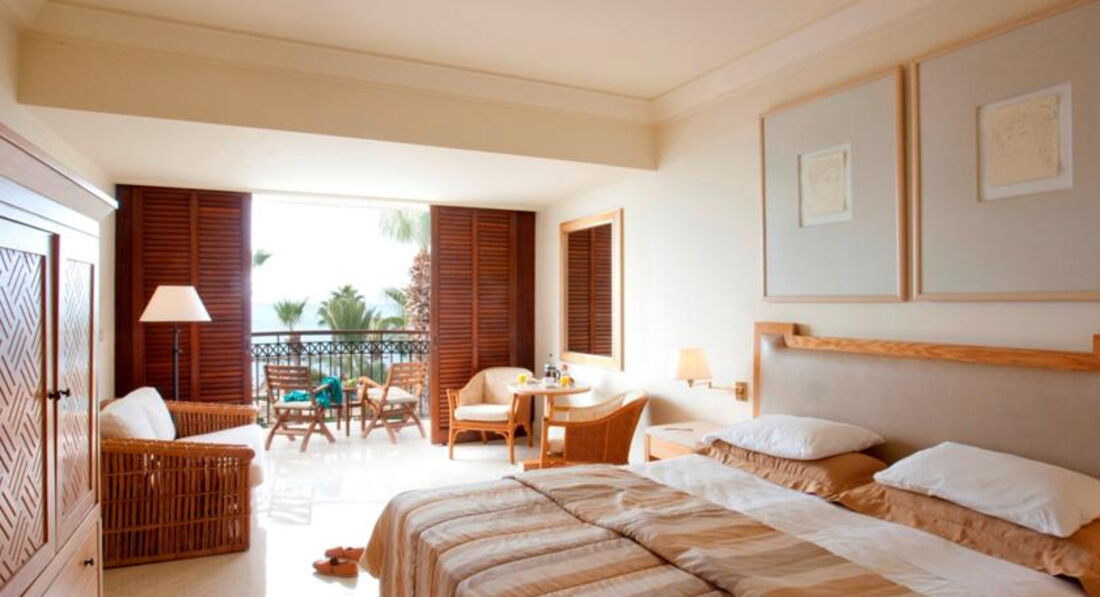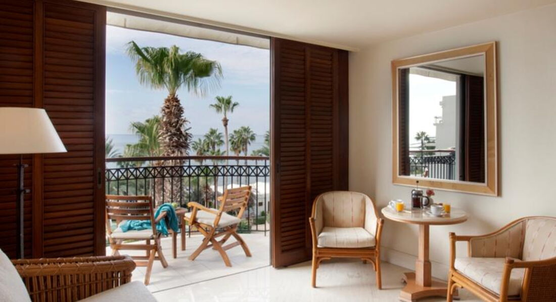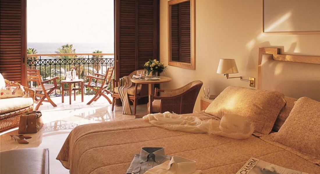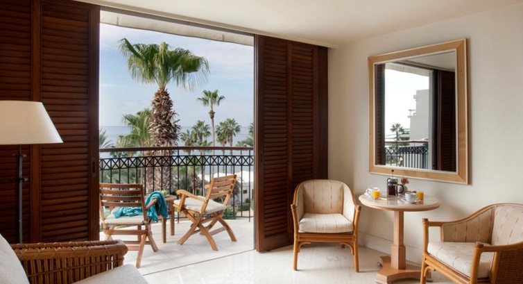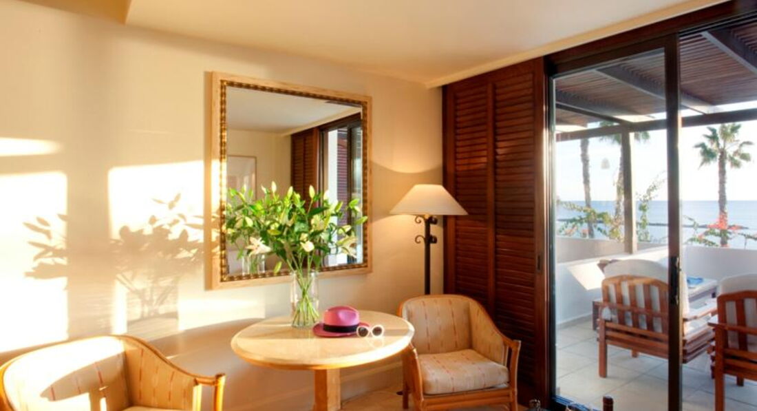 Готель першої лінії відрізняється вишуканим дизайном інтер'єру і комфортабельними номерами в класичному стилі. Територія в самому центрі туристичної зони нижнього Пафосу вражає ландшафтним дизайном. Тропічний сад із декоративними водоспадами на березі моря створює розслаблюючу атмосферу. Рекомендуємо для сімейного спокійного відпочинку, зокрема з дітьми. Гостям готелю можна скористатися частиною інфраструктури сусіднього готелю Almyra (SPA-центр, дитячий клуб).