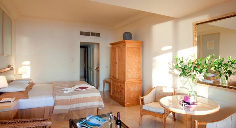 Отель расположен на берегу в 5 минутах ходьбы центральная улица с барами и ресторанами, магазинами и супермаркетами, набережная, старинный форт и археологические достопримечательности. Вдоль моря проходит променад. Пляжа нет, есть небольшой участок для входа в море и узкая песчаная полоса, туристы пользуются шезлонгами, стоящими на траве, на территории отеля. Новинка этого года: гости, которые проживают в отеле более пяти дней, могут один раз бесплатно посетить ресторан на ужин. Туристы с детьми могут ходить в миниклуб соседнего отеля Almyra 5*. Хороший отель 5* по всем параметрам: номера, питание и сервис.