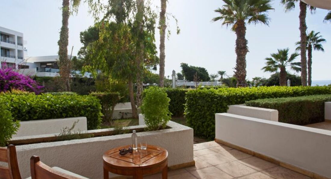 Номер Studio (студио) с бассейном глубиной 1 метр. Есть студио с террасой, бунгало, номера с джакузи. Террасы отделены живой изгородью. На пляже соседнего отеля Almyra 5* – лучше вход в воду.