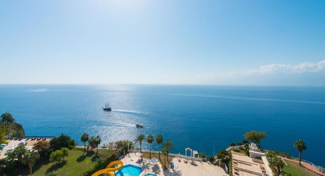 Розташування: за 15 км від аеропорту, за 5 км від центру м. Анталья, на високому березі моря.