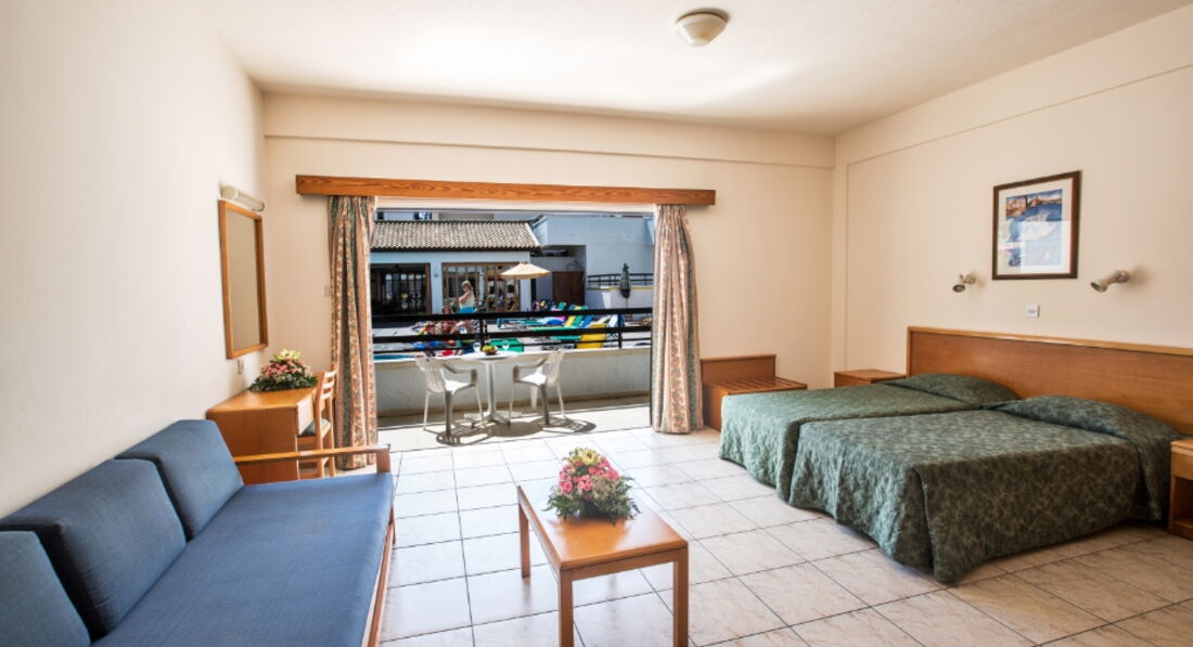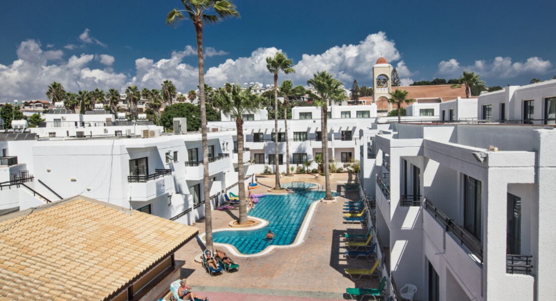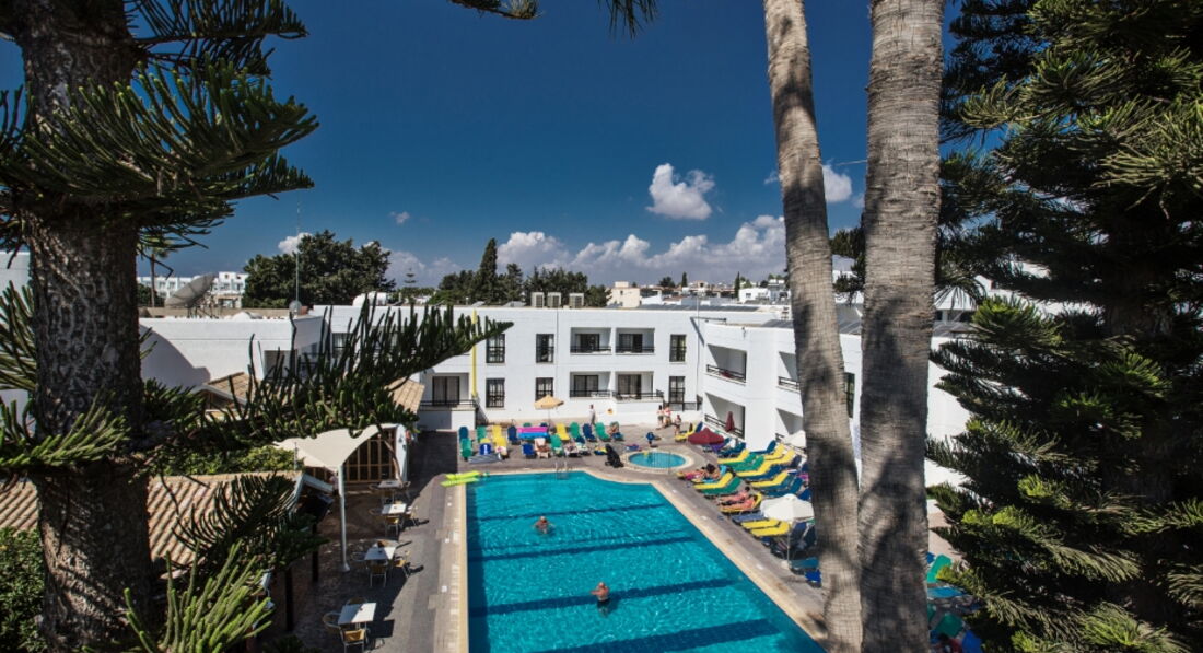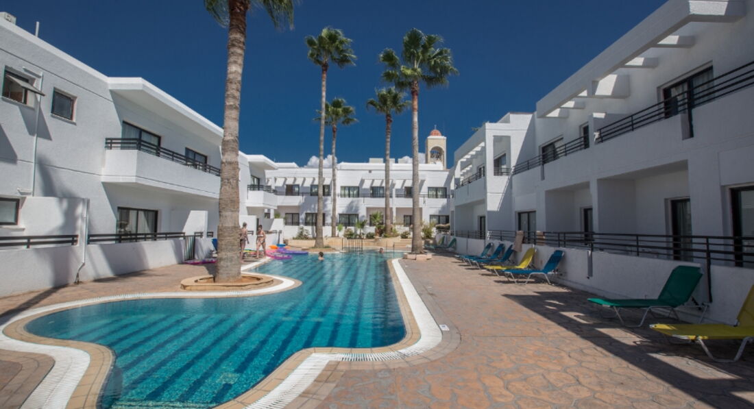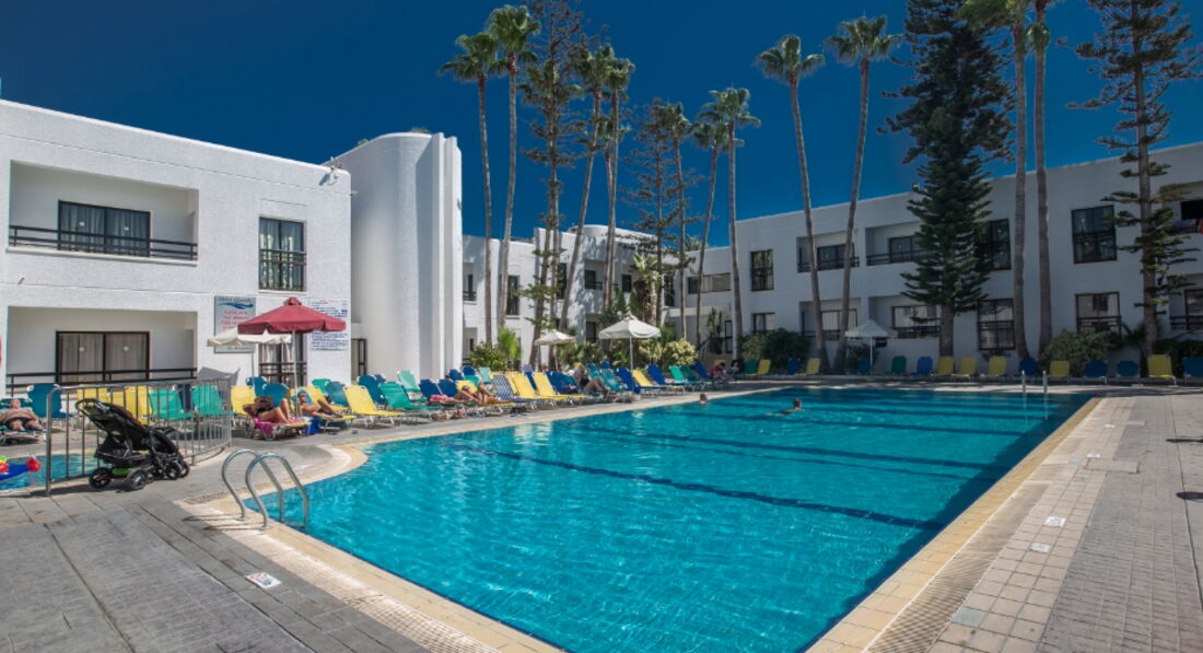 Перед тем как ехать,читала только отзывы иностранцев по этому отелю,мол кошмар и ужас!!!но был горящий тур и мы решили,что за 300евро с человека ждать чудес не стоит!!Итак,конец октября,конец сезона на Кипре...людей мало...температура воздуха 28,вода 23.Заселили нас в ближний корпус,возле ресепшена с мини кухней с видом на бассейн,все чисто в номере,есть балкончик небольшой.Людей в отеле практически не было.Расположен удачно,в центре Ая-Напы,где кипит ночная жизнь!но в отеле есть пары с детьми и семейные пары.Готовили мы сами,либо ели в кафе,брали на прокат машину и ездили в Пафос и в горы.На Кипре смотреть особо нечего,пару мест все же можно.Это место рождения Афродиты,горы Тродос...мы просто катались,смотрели пляжи и сам Кипр..От нашего отеля до пляжа ближайшего 10-12 мин ходьбы,до Ниси-Бич мин..30,но он очень красивый с бирюзовой водой,он самый лучший пожалуй на Кипре.Также были на пляже Ландос,он тоже удобен заходом в воду,но от отеля к нему нужно ехать на автобусе,а они ходят редко.Либо нужно знать когда.Отель рассчитан на англичан,на русском языке не говорят.Сразу просите адаптор,т к у них европейские резетки.Телевизора в номерах нет,нет фена и мыльных пренадлежностей.Интернет платный.Отель можно рекомендовать,но не в пик сезона.В другой раз я бы все же выбрала отель ближе к морю,на первой линии .