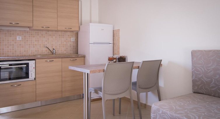 Зручне розташування в центрі мальовничого селища Пефкохорі, просторі двокімнатні апартаменти з кухонним куточком, інтернет. Магазини, бари, популярні клуби у пішій доступності.