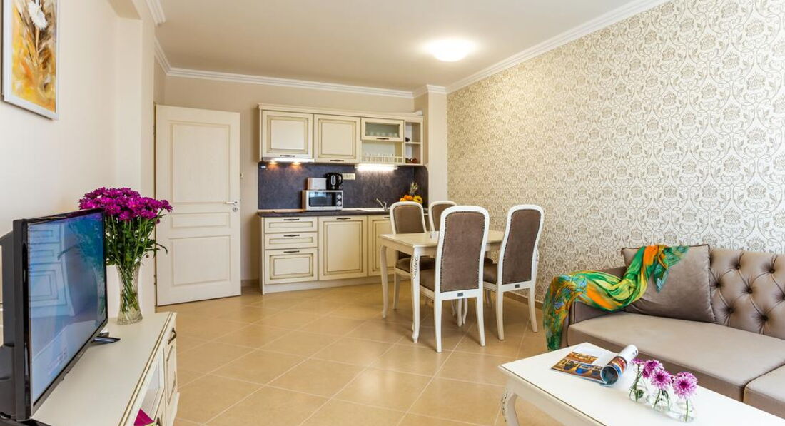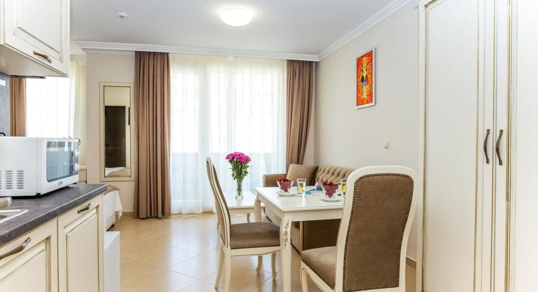 Типи номерів: One Bedroom Apartment (Площа 60 м2, Максимальне розміщення - 2+2/4 дорослих.) Two Bedroom Apartment (Площа 80 м2, Максимальне розміщення - 4+1/5 дорослих.) Студія (Максимальне розміщення – 2+1/3 дорослих.)У номері: