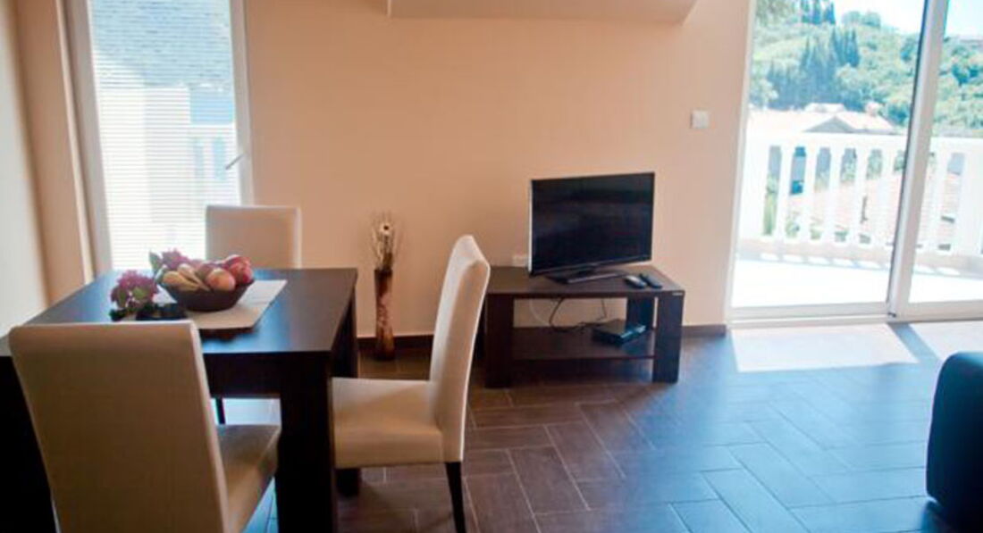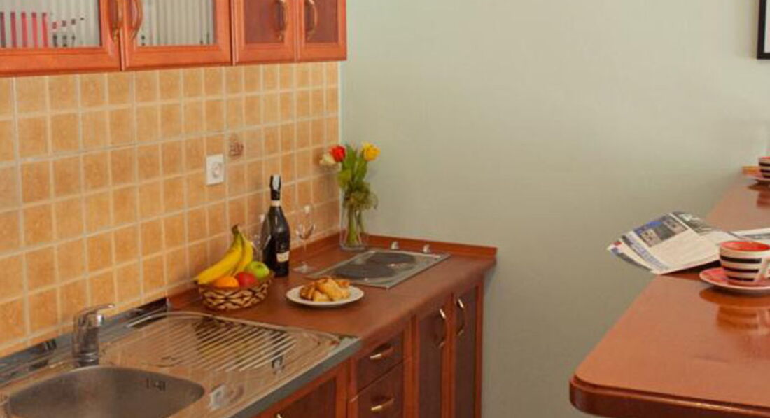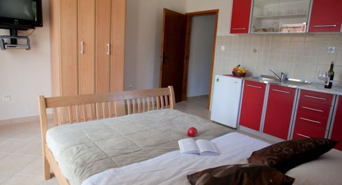 • У Komfort APP 04+1 SV : трикімнатний апартамент, що складається з вітальні з диваном, столовою зоною та двох спалень, у кожному з яких французьке ліжко, повністю обладнана кухня, холодильник, супутникове ТБ, кондиціонер, Wi Fi інтернет, санвузол з душовою кабіною , фен, тераса з видом на море. Максимальне розміщення-5 осіб. Площа – 70 м2.
