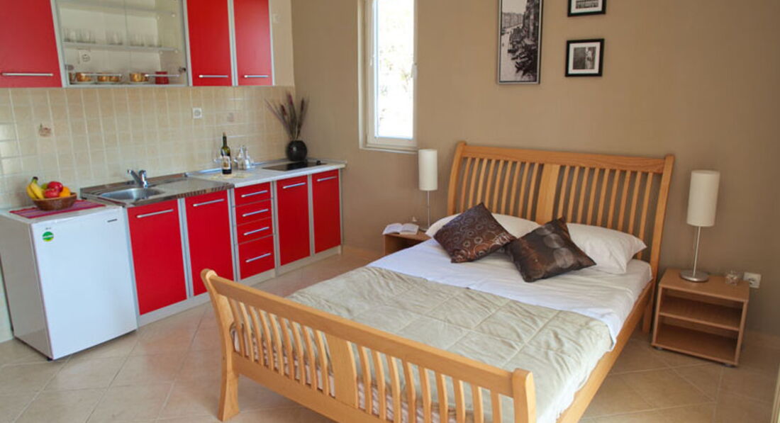 • В STUD 03 SV : французьке ліжко і окреме ліжко, супутникове ТБ, кондиціонер, Wi Fi інтернет, повністю обладнана кухня, холодильник, санвузол з душовою кабіною, фен, тераса з видом на море. Максимальне розміщення-3 особи. Площа – 40 м2