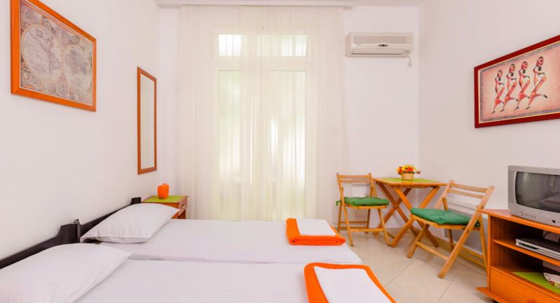 Апартаменти № 4: 50м2+ тераса 6м2 з видом на сусідні будинки, вітальня з розкладним диваном, кухня, спальня з французьким ліжком. Максимум 4 особи.