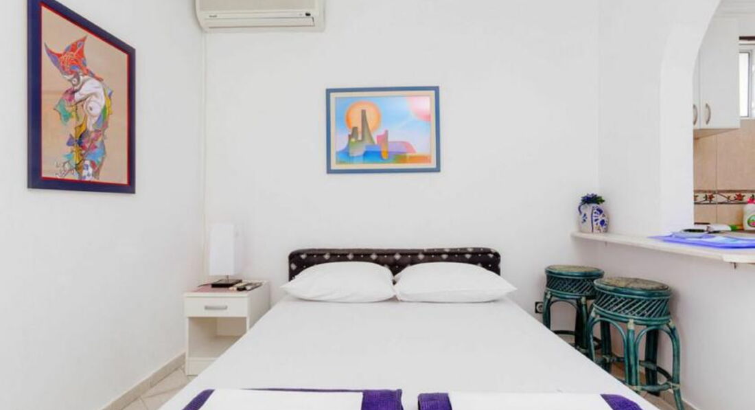Апартаменти №3: 50м2+ тераса 6м2 з видом на сусідні будинки, вітальня з розкладним диваном, кухня, спальня з французьким ліжком. Максимум 4 особи.