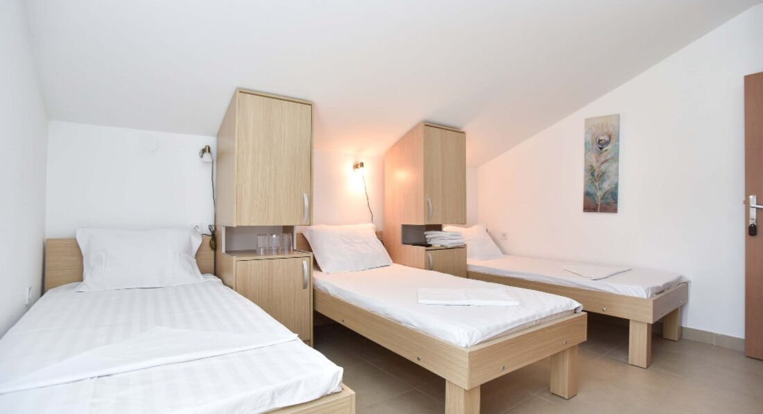 • TWIN mansard (№3,4): 14-18м2 + тераса 3м2 з видом на двір та вулицю, два роздільні ліжка, тумбочка, шафа, душова кабіна