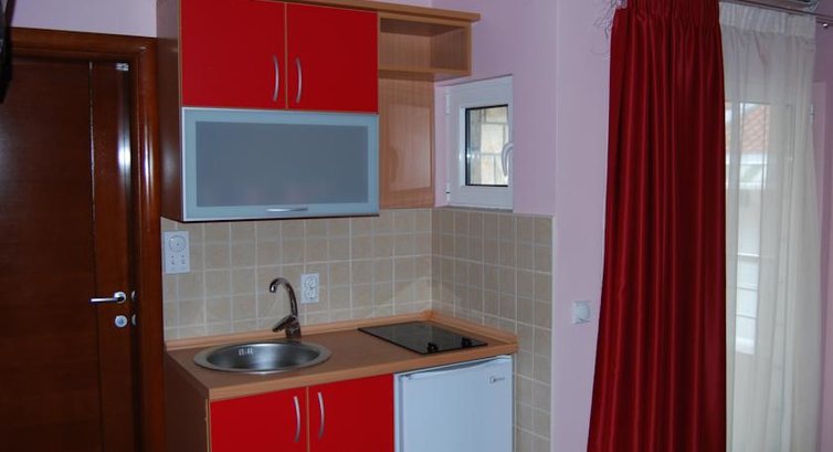 У готелі: 5 апартаментів 04 та 12 студіо 02+1, вид на море. Весь готель оточений зеленню та виноградом.