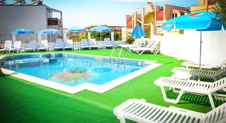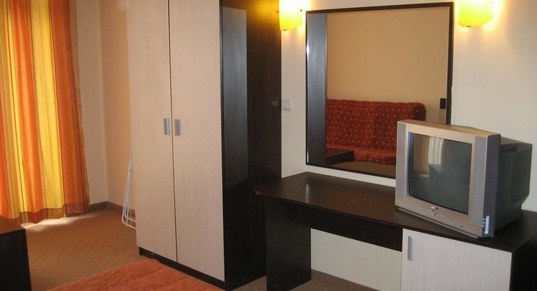 Отель замечательный.Нет никакой помойки и грязи,как тут пишут,уж не знаю,где вы там отдыхали.Персонал вежливый,отзывчивый,много молодых ребят,которые всегда готовы откликнуться.Завтраки конечно не ахти,холодный кофе,маленький выбор блюд,но на завтрак сойдет,чтобы перекусить.Есть новая пристройка-там водонагреватель, нет бортика для воды в душе,всё растекается или разносится ногами по полу,затем по ламинату в комнату,но убирали всё насухо днем и было внось чисто) Занавески,полотенца-всё чистое,уборка ежедневно,постель часто меняли.Телевизор ловит 1й канал,есть музыкальный и несколько болгарских каналов.Бассейн чистый,с подсветкой и подогревом,глубина может около 1.50.В основном корпусе,т.е. ближе к ресепшн,в номерах ковер,бортик и занавеска в душе,фена нет.На цокольном этаже полноценный балкон,а этажом ниже лишь камнем отгороженный балкон,но сушить белье можно,хотя и вида нет никакого конечно,кому принципиально.Кушать можно у них в ресторанчике,дешевле,чем в кафе.До моря идти минут 5,пляж чистенький,море прозрачное.