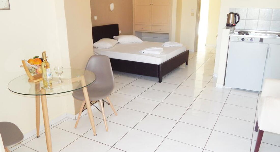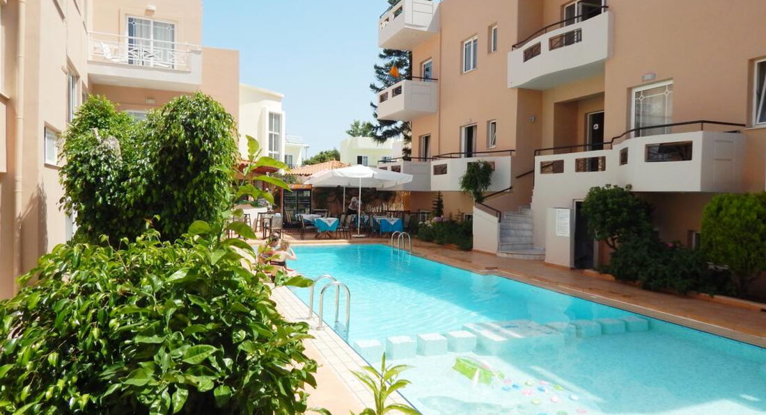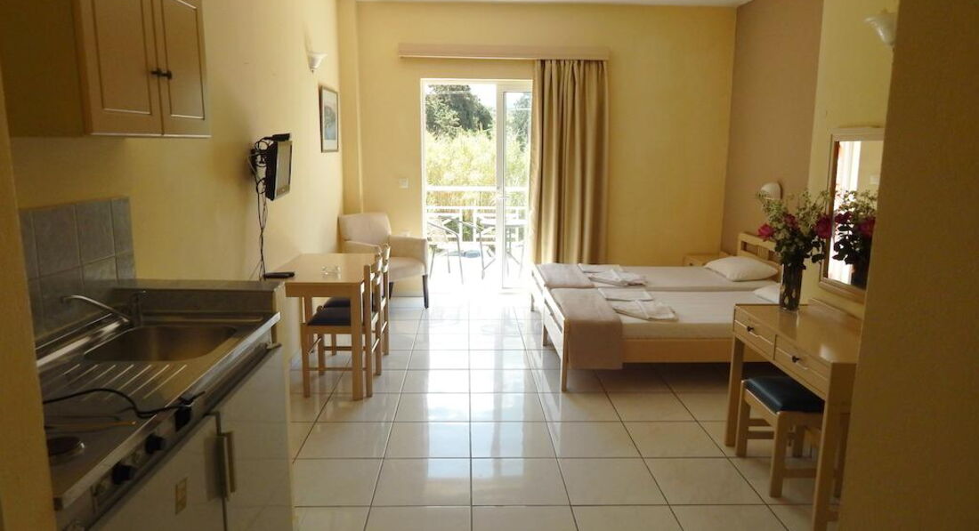 Apollon Hotel – невеликий апарт-готель, який пропонує сімейні номери та затишні апартаменти, доступні для цілорічного спокійного відпочинку.