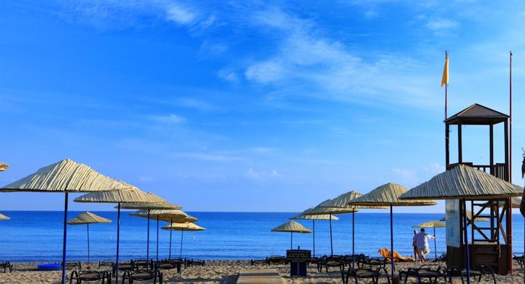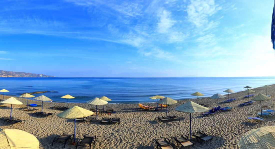 На першій береговій лінії, піщано-гальковий. Вхід пологий. Шезлонги та рушники на пляжі безкоштовно.