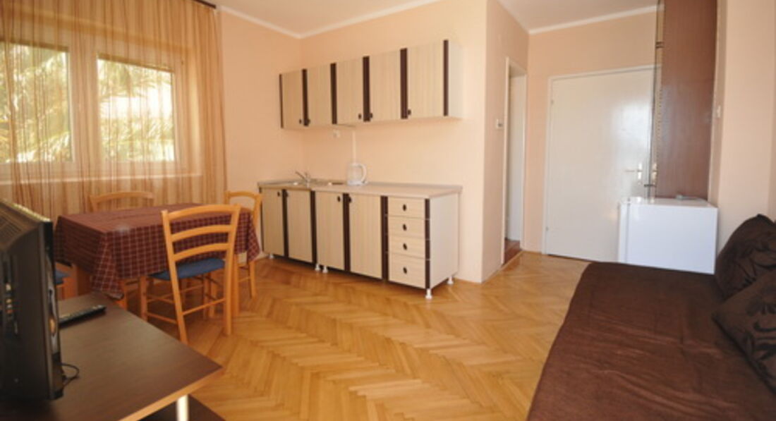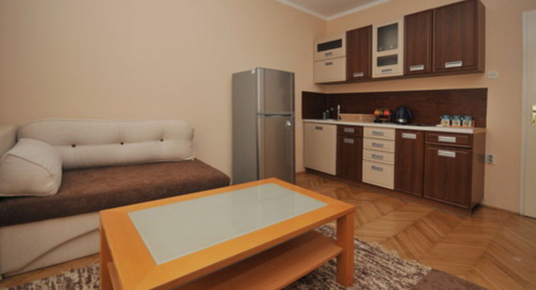 APP 02+2/SV/№3: близько 26м2 + тераса 3м2, великий коридор, вітальня з розкладним диваном та міні-кухнею, спальня з французьким ліжком.