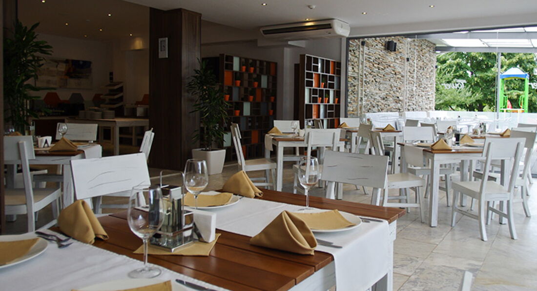 • Ресторан First Line – середземноморський ресторан, що працює за системою «а-ля-карт». Місткість ресторану, включаючи альтанки на пляжі, до 250 осіб. Тут гостям пропонують страви середземноморської, французької та італійської кухні. Інтер'єр ресторану витриманий у білій гамі, що надає йому легкості та урочистості. Ковані альтанки на пляжі створюють особливу атмосферу усамітнення. У ресторані часто проходять банкети, фуршети, кава-брейки. Є діджейське обладнання та танцпол. Ресторан First Line працює лише влітку