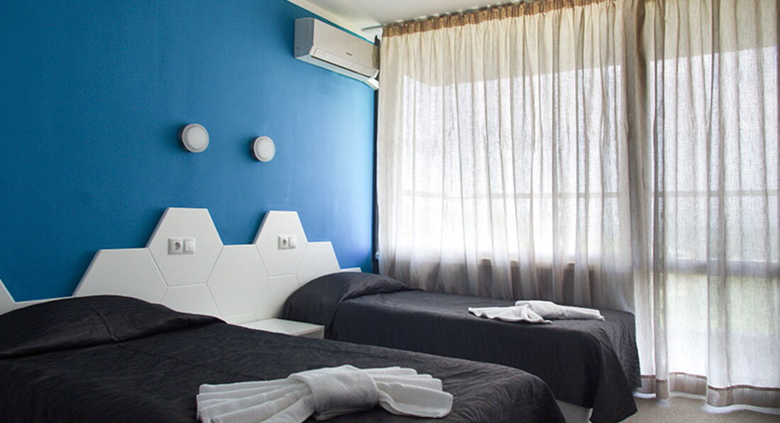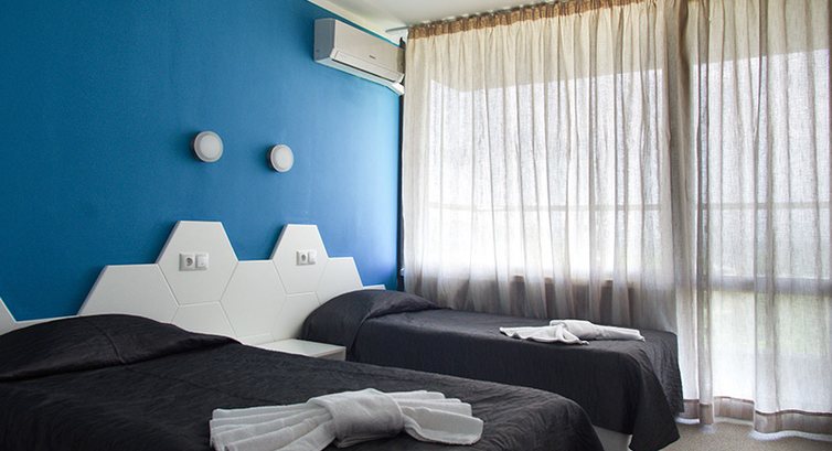 • СТАНДАРТНИЙ НОМЕР ДВОМІСНИЙ (TWIN) — 2 шт., два 1,5 спальні ліжка, стіл, дзеркало, шафа; ТБ, кондиціонер, санвузол (душ), балкон