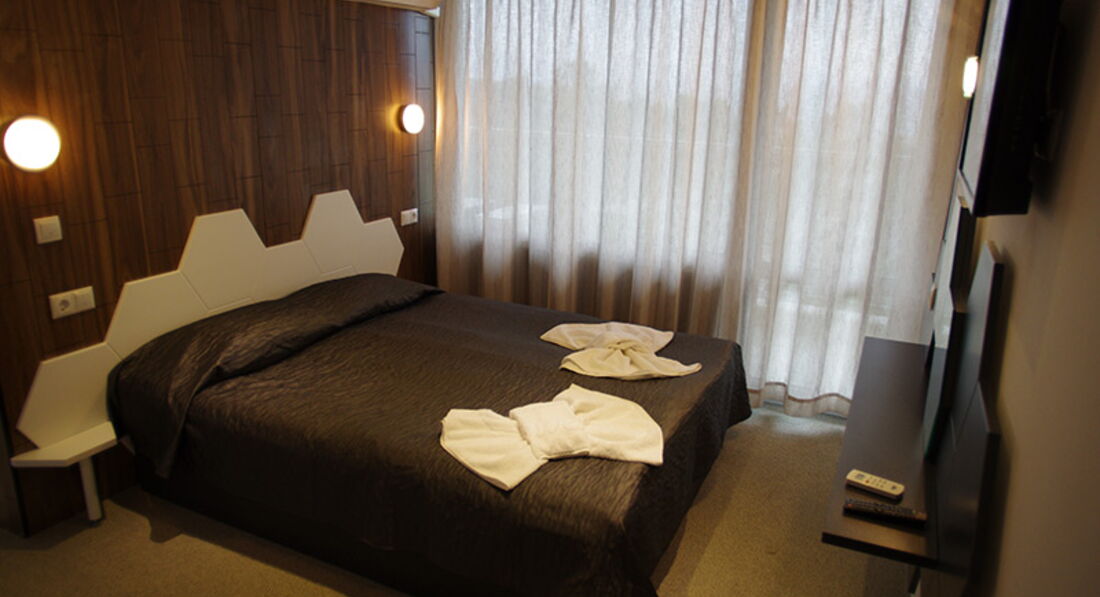 • СТАНДАРТНІ НОМЕРИ (DBL) - 70 шт., 56 номерів з видом на море, 14 номерів з видом на парк Одна спальня з двомісним ліжком, додаткове місце - крісло, ТБ, сейф, кондиціонер, 1 санвузол (душ); холодильник (за додаткову плату), балкон.зел (душ), балкон