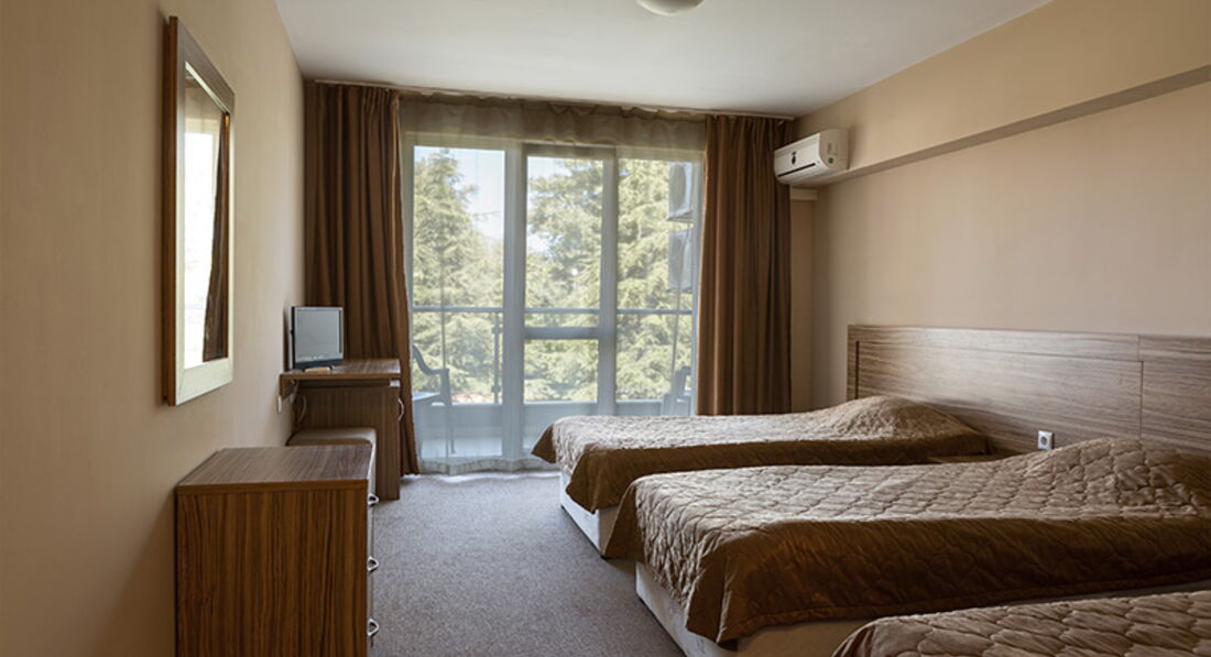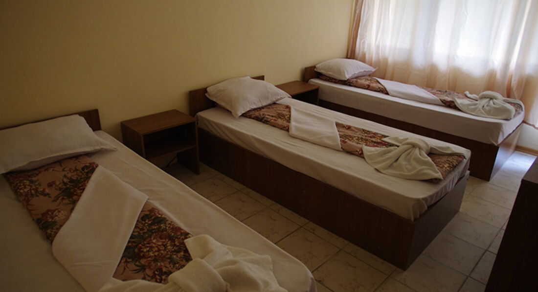 номерний фонд: 111 номерів, Два стаціонарні телефони для міжнародних дзвінків та сейфові осередки на ресепшен, платний Wi-Fi. • CТАНДАРТНИЙ НОМЕР ТРИМІСНИЙ (TRPL) - 98 шт., Три 1,5 спальні ліжка, стіл, дзеркало, шафа, ТБ, тумбочки, кондиціонер, балкон, санвузол (душ)