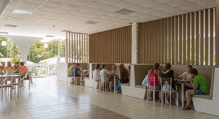 • ресторани комплексу пропонують збалансовану програму 3-разового харчування на основі екологічно чистих продуктів, розроблену професійними дієтологами спеціально для спортсменів