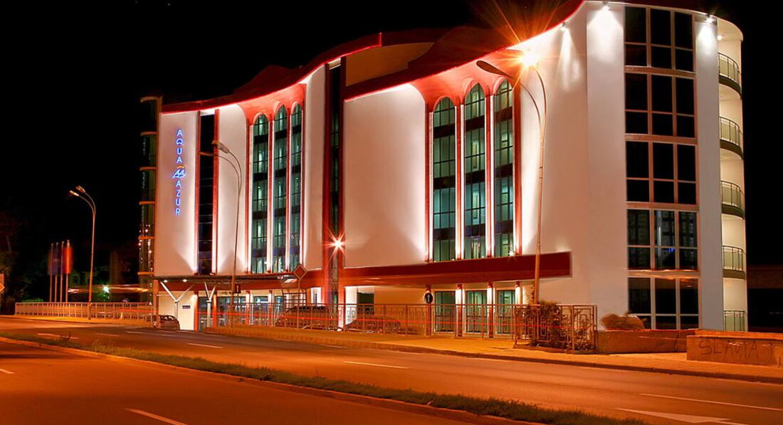 Хороша страна БОЛГАРИЯ и в этом я убеждаюсь все больше и больше, когда приезжаю в эту удивительную страну. Отель хороший, бармены у бассейна работали быстро. Питание у нас было все включено. Все очень съедобно и вкусно, у бассейна пицца, печеньки и мороженое. Номер был стандарт с боковым видом на море. Все исправно работало. Уборка производилась каждый день и качественно. Территории у отеля почти нет, что свойственно для отелей Болгарии. В номере были халаты, перед сном одеваешь его идешь в бассейн и купаешься. Мало где положат в стандарт номере халаты - это плюс. Холл у отеля красив, ну под название АКВА АЗУР. До моря близко мин 5 не более, пляж хороший песчаный.