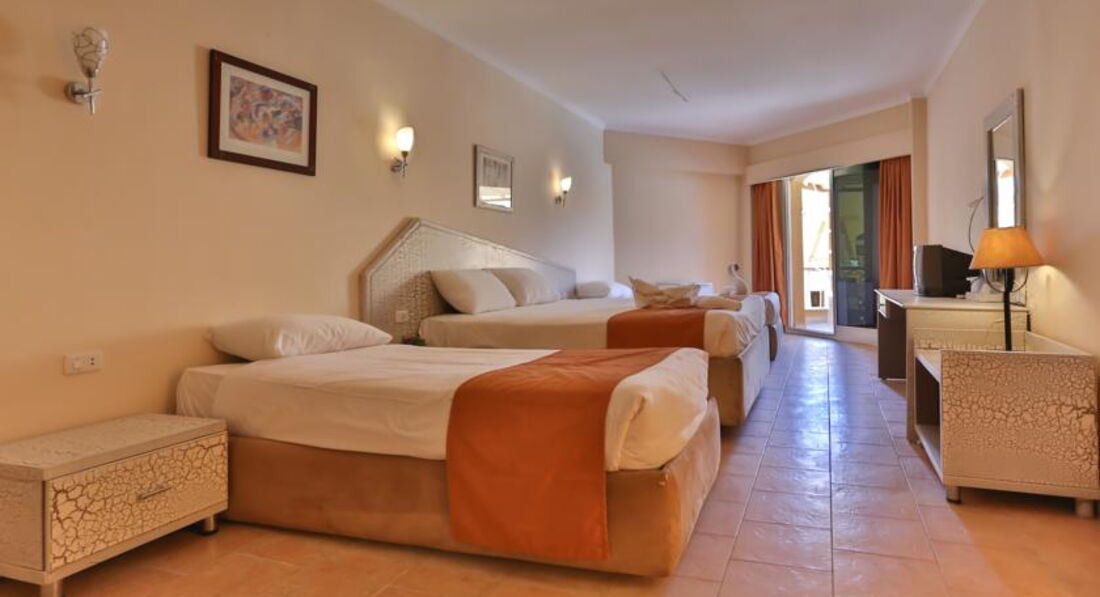 Начну с самого начала.Заехали быстро,без проблем,без всяких бакшишей.В баре ,на рецепшене сразу ошарашили тем,что воды для питья у них просто нет.бутылированной нет просто нигде.В куллерах вода из крана (с хлором и еще бог знает с чем).куллер только при барах.В других отелях пить воду из крана категорически не рекомендуют.Тут просто молчат.что касается спиртного:В баре может просто стоять одна бутылка.Это или ром,,или анисовая водка,виски.Но только не все это в одно время.как приехали,три дня,спиртное было разбавлено на столько... просто вода!.Пиво только в обед и ужин(ужин не всегда) и только в ресторане.Кому это дело важно,можно все купить.благо городские бары совсем недалеко.Еда....Утром яишница(омлет) и все!остальное все растительного происхождения в виде бобов и всяческой травы.Есть огурцы свежие,маринованные,и еще какие то. ОБЕД:преобладала печень.было несколько раз мясо.выдача под строгим контролем.была рыба,одна и та же на протяжении всех 10 дней.На гарнир обязательно рис,но бывал и картофельИз напитков пиво,чай кофе. Ужин:все почти так же как на завтрак. Номер у нас был неплохой.Убирали каждый день.В номере сейф,холодильник,телевизор,есть душ,только горячая вода не всегда.Пляж довольно неплохой и рядом с номерами.Лежаков много и все новые.Полотенца выдают без карточек,но если не взял с утра,то получишь уже пользованное.Анимации практически никакой.